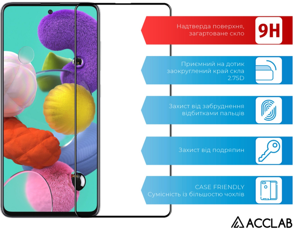 Стекло защитное ACCLAB Full Glue Samsung A51 Black (1283126508608)