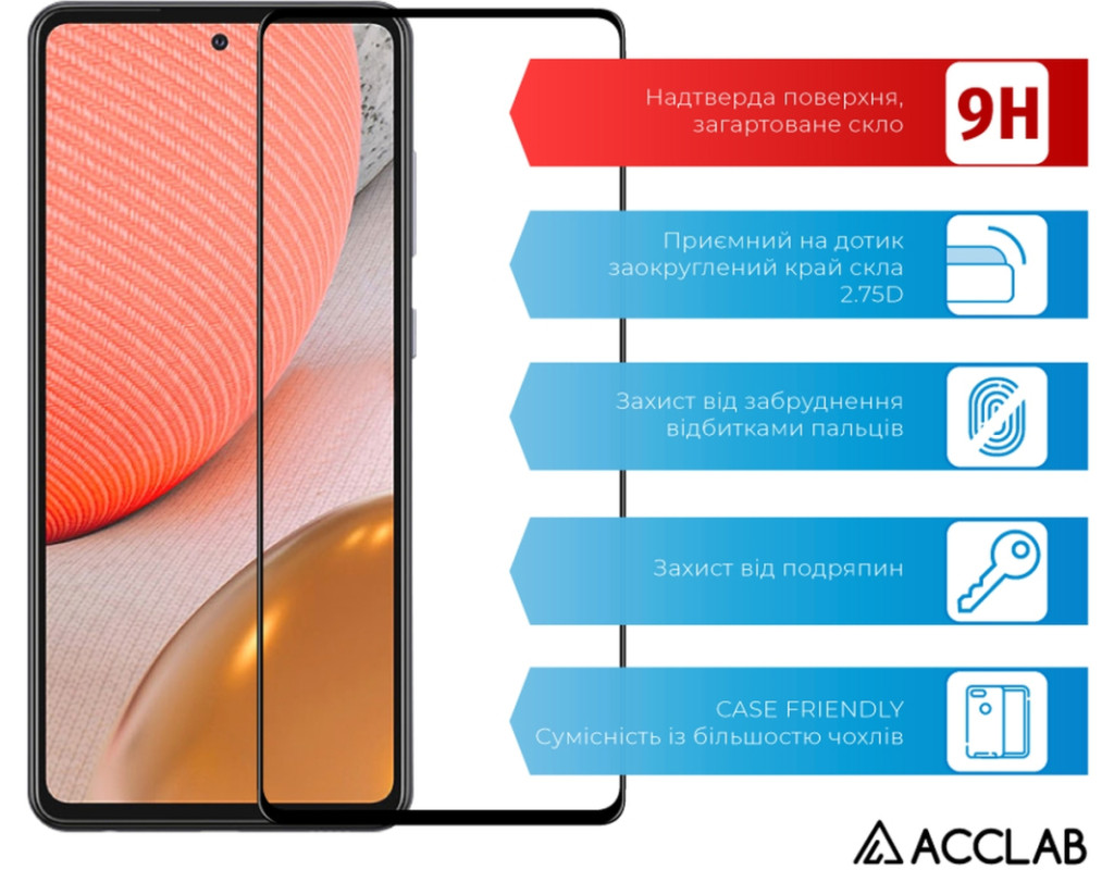 Стекло защитное ACCLAB Full Glue Samsung A72 Black (1283126510557)