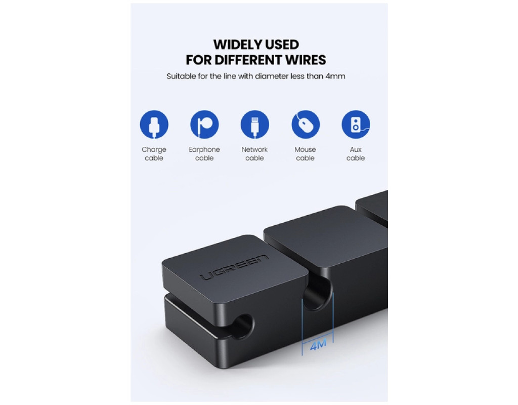 Органайзер для кабелей питания и зарядных кабелей Ugreen. Разработан для того, чтобы Ваш рабочий или офисный стол был аккуратными и организованными. Он может держать все ваши кабели в пределах досягаемости руки во время использования, а также оставаться на месте, когда отсоединен. Вы никогда не потеряете свой кабель на полу или за столом, если у вас есть такой органайзер для кабелей. Также этот органайзер для кабелей сэкономит время и деньги, увеличив срок службы кабелей и сэкономив время на их поиск. |