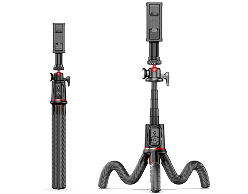 RTAKO C03: Гибкий трехпод-селфи-палка "Осьминог" с вращающейся на 360° съемной головкой – идеален для любой съемки! Представляем вам универсальный и чрезвычайно удобный трипод-селфи-палку RTAKO C03 . Его гибкие ножки в форме осьминога позволяют надежно фиксировать телефон на любой поверхности – ровной, неровной, вращать вокруг столбов или веток. Благодаря выдвижной конструкции, он легко превращается в селфи-палку для отличных автопортретов и групповых фото. А съемная шаровая головка с вращением на 360° обеспечит полную свободу в выборе угла съемки. Основные преимущества RTAKO C03: