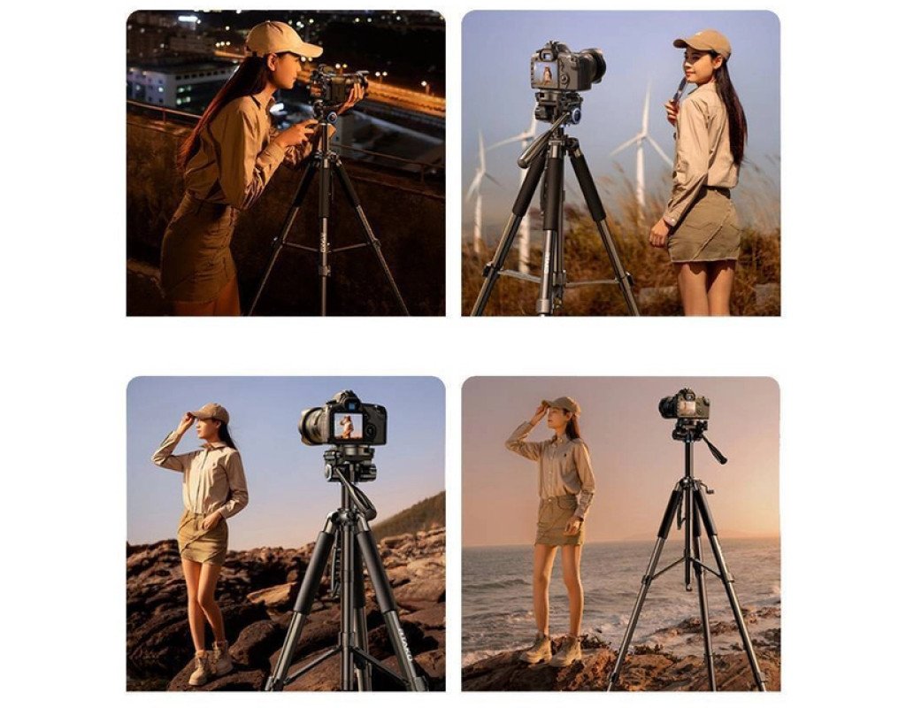 - Удобство использования: Быстросъемные фиксаторы ножек и интуитивно понятная конструкция делают процесс установки и регулировки штатива максимально простым и эффективным.