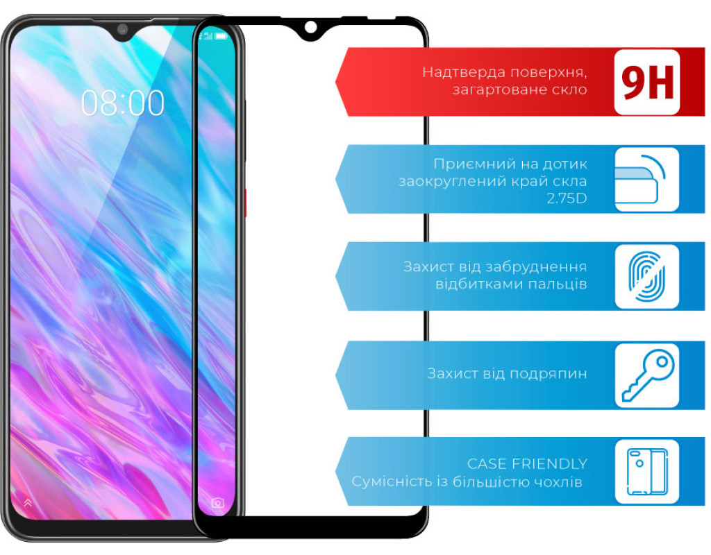 • Уровень прочности: 9H. Минимизирует риск повреждения передней панели мобильного устройства при повседневном использовании.