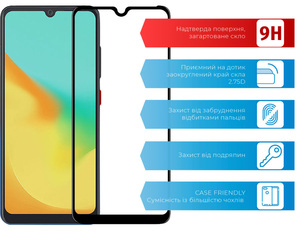 • Уровень прочности: 9H. Минимизирует риск повреждения передней панели мобильного устройства при повседневном использовании.