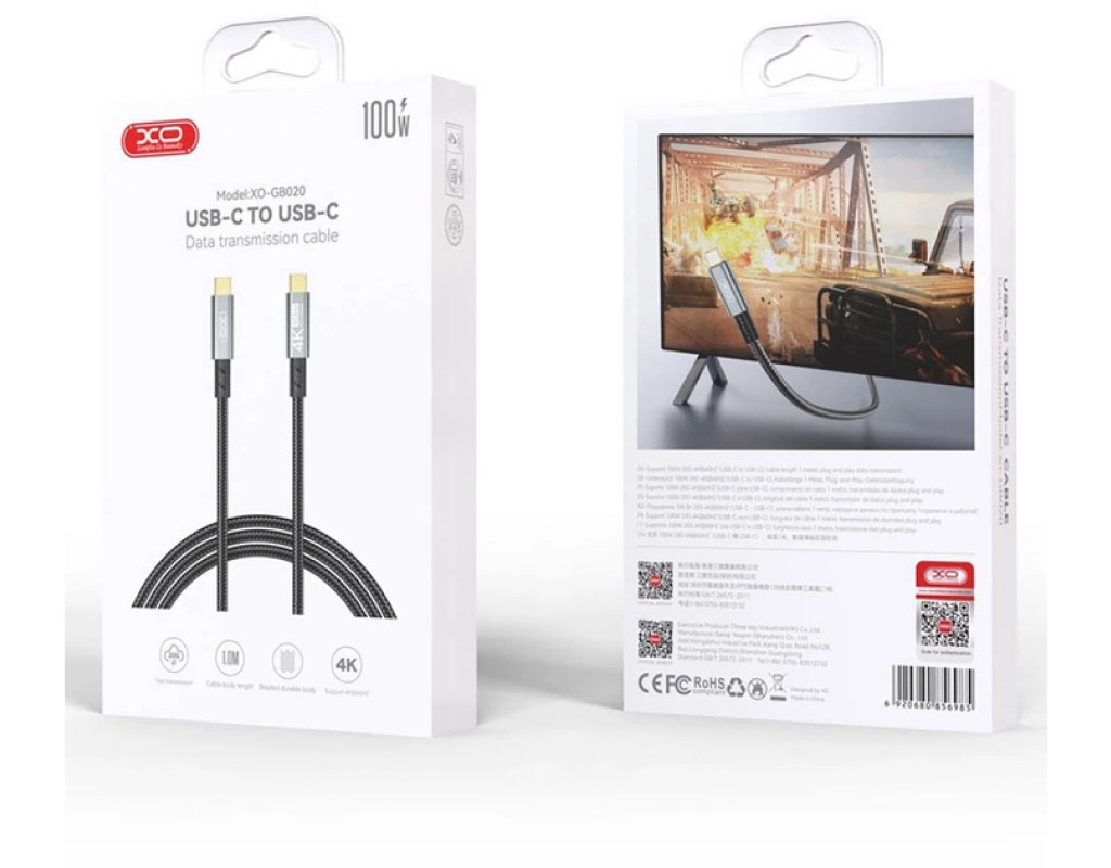 XO GB020-CC - надежный и безопасный кабель с поддержкой быстрой зарядки устройств на мощности 100W.