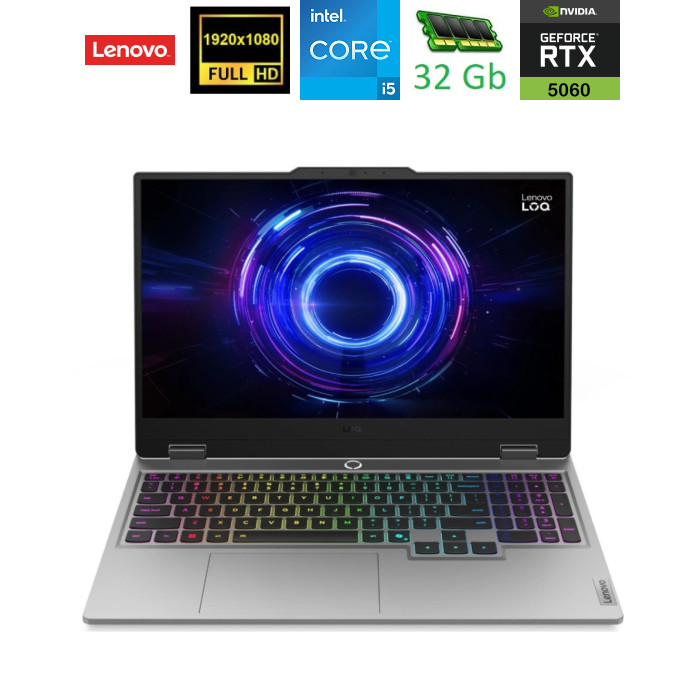 Портал у світ кольору, швидкості й потужності Lenovo LOQ 15IRX10 пропонує 15.6-дюймовий Full HD IPS-дисплей із роздільною здатністю 1920x1080, частотою оновлення 144 Гц та підтримкою технології G-SYNC. Завдяки яскравості 300 нітів та точності кольорів 100% палітри sRGB, ви отримуєте насичене та чітке зображення. У поєднанні з TÜV Rheinland Low Blue Light, екран зменшує навантаження на очі, що особливо важливо при тривалому використанні. Відеокарта NVIDIA GeForce RTX 5060 з 8 ГБ GDDR7 стане вашим головним союзником у створенні контенту та іграх. З Boost Clock у 2497 МГц та TGP 100W, вона видає високоякісну графіку без затримок завдяки передовим AI-технологіям — це до 572 AI TOPS, які забезпечують швидку обробку складних сцен. Два слоти оперативної пам'яті DDR5-4800 SO-DIMM обсягом по 16 ГБ кожен забезпечують високу швидкість передачі даних. А 1024 ГБ SSD — це простір для всіх ваших даних, програм та ігор, гарантуючи блискавичний запуск системи та збереження великих файлів.