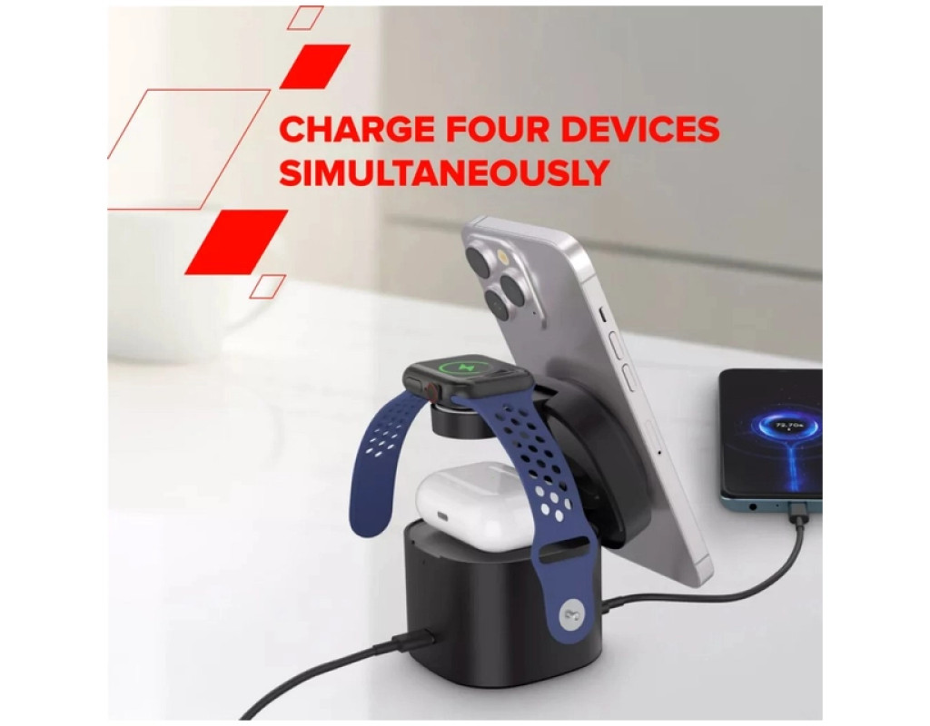 | Зарядное устройство Canyon 4-in-1 wireless charging stand CNS-WCS405B — это воплощение современных технологий и удобства. Универсальная станция позволяет одновременно заряжать смартфон, Apple Watch, AirPods и ещё одно устройство через USB Type-C. Компактный дизайн размером 70×70×70.3 мм упорядочивает ваше пространство, сохраняя всё в порядке без лишних проводов. Благодаря сертификации Qi2, OnCharge 405 обеспечивает эффективное магнитное выравнивание для стабильной зарядки до 15 Вт. Магнитное крепление удерживает ваши гаджеты на месте, даже во время активного использования. Встроенные четыре уровня защиты (предотвращение перенапряжения, перегрузки, перегрева и короткого замыкания) гарантируют безопасность для ваших устройств. В комплекте — мощный адаптер PD 65 Вт и необходимые кабели, что упрощает вашу жизнь, делая её более удобной дома, в офисе или в путешествиях. Преобразуйте своё рабочее место в организованную зону с Canyon OnCharge 405, которая предоставляет скорость, безопасность и стиль в одном решении. |