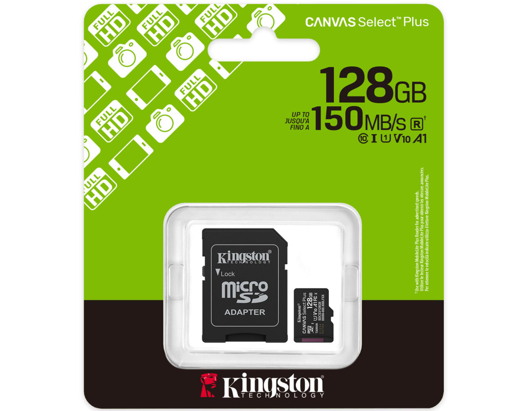 | Memory card microSDXC 128Gb Kingston Canvas Select Plus Gen3 100R A1 C10, Retail + adapter |