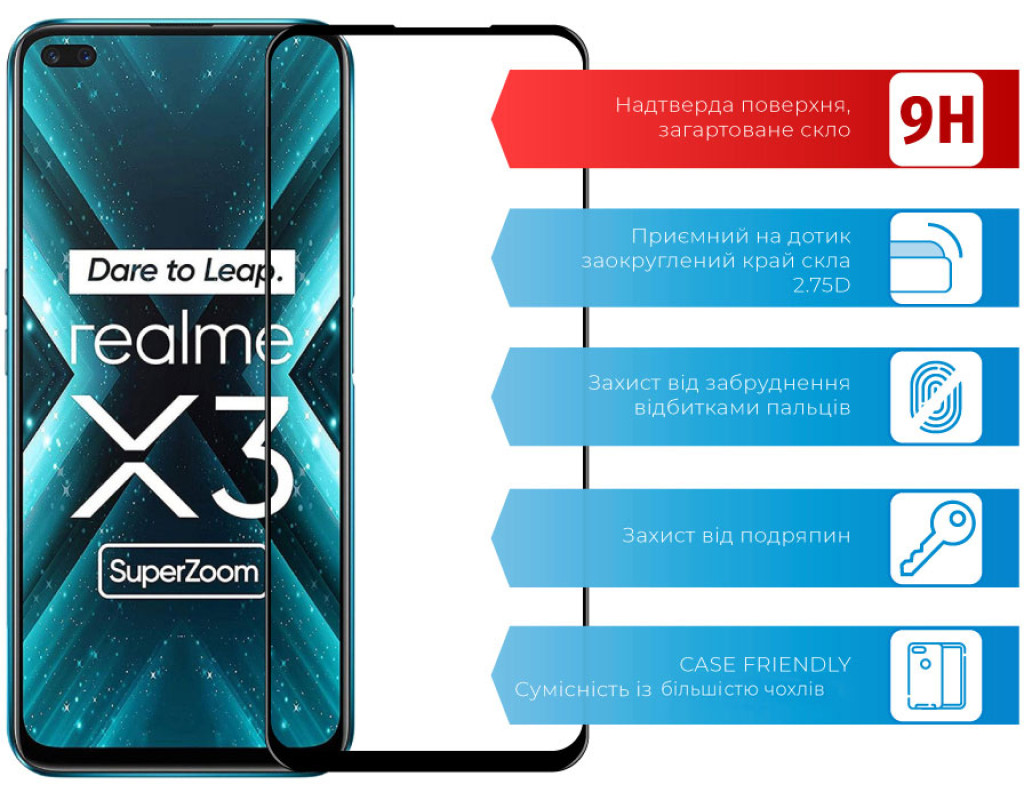 Назначение - для телефона, Вид покрытия - защитное, Совместимость с моделями - RealMe X3, Особенности - прочность: 9Н, влажная салфетка, Количество в упаковке - 1 шт