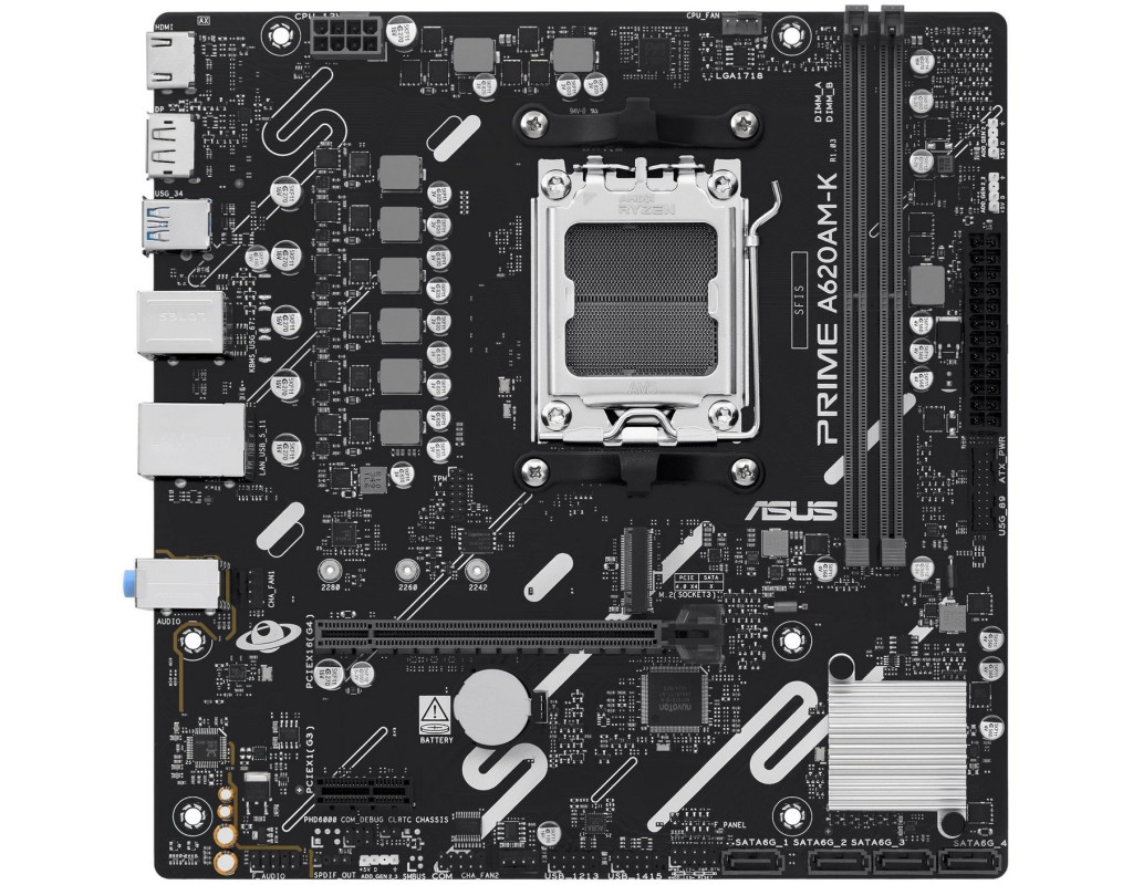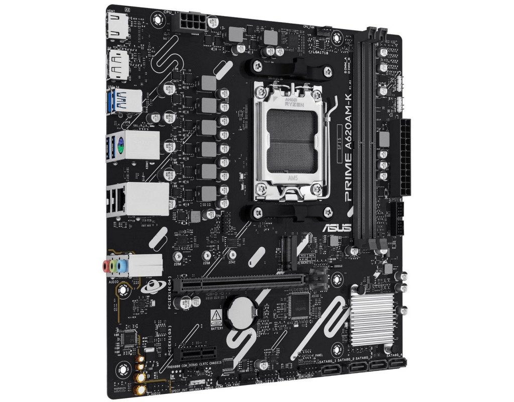 | ASUS PRIME A620AM-K – это материнская плата формата micro-ATX на базе чипсета AMD A620 для сокета AM5, разработанная для современных ПК с поддержкой AI. Она совместима с процессорами AMD Ryzen и идеально подходит для гейминга и создания контента. Эта модель сочетает стабильную производительность, эффективное охлаждение и удобные инструменты для пользователей любого уровня.