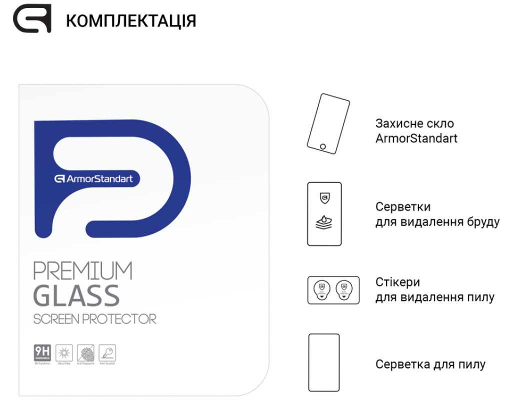 Защитное стекло ArmorStandart является отличной защитой для дисплея вашего планшета. Оно имеет качественное олеофобное покрытие, препятствующее появлению отпечатков пальцев. Стекло прекрасно защищает дисплей смартфона не только от царапин, но и от других видов повреждений. Стекло 2.5D – совместимое с любым типом чехлов. Case-friendly – все модели чехла не загибают края защитного стекла. Достоинства: