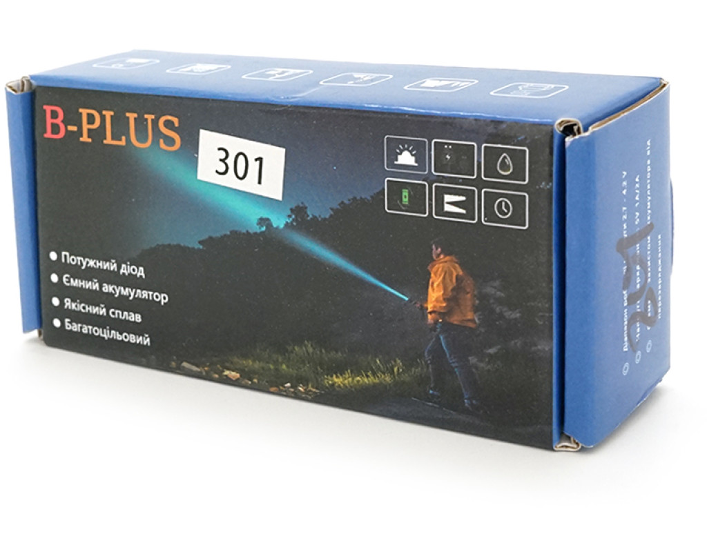 Ліхтарик ручний BP-301, COB, 3 режими, корпус алюміній, магніт, акум 18650, USB кабель, BOX