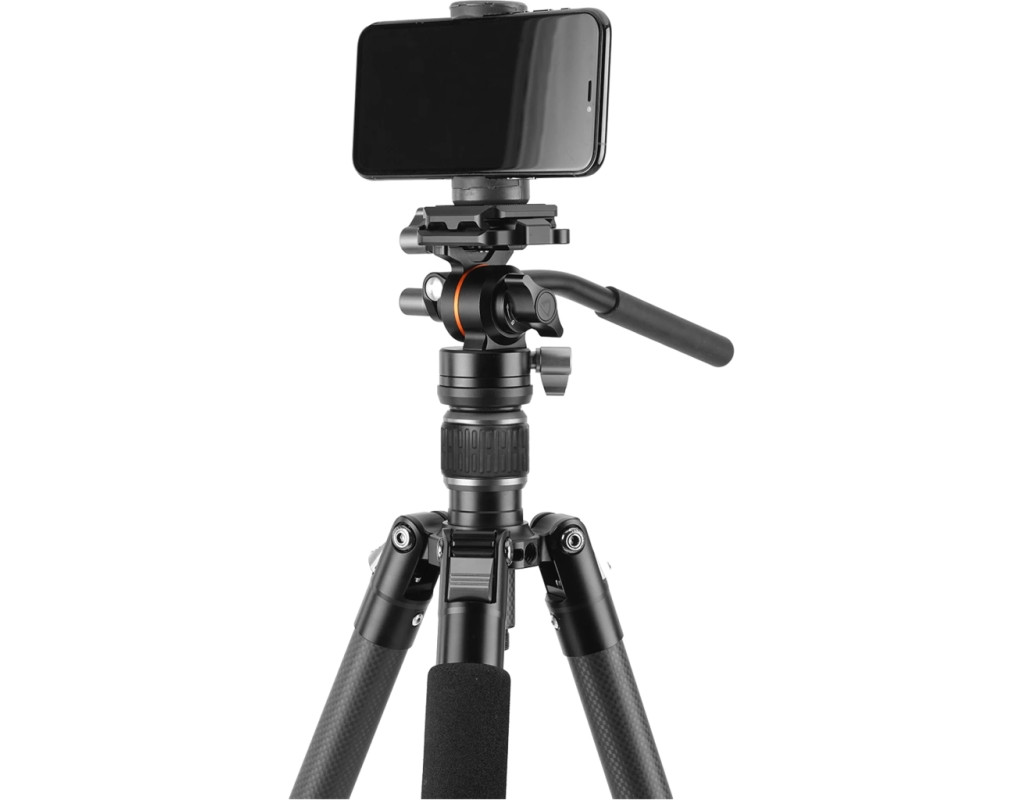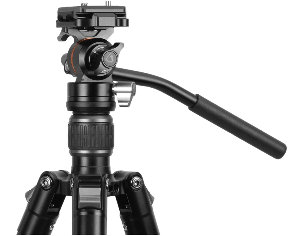Vanguard Vesta Go 264CV12 – это легкий и надежный штатив для видеоблоггеров, операторов, наблюдателей и всех, кто ценит стабильность и точность во время съемки. Оснащенный видеоголовкой VEO PV-12, он обеспечивает плавные панорамные обороты и наклоны благодаря гидравлическому двустороннему управлению, полностью устраняя рывки и вибрации. Встроенная система пружинной балансировки эффективно стабилизирует камеру, что особенно важно при использовании тяжелых объективов или сложном кадрировании. Быстросъемная пластина QS-55P, совместимая со стандартом Arca, гарантирует мгновенную установку или снятие оборудования, а дополнительный держатель смартфона в комплекте превращает мобильное устройство в полноценный инструмент для создания профессионального контента. Ножки штатива состоят из четырех секций из прочного и легкого карбона, максимальный диаметр которых составляет 26 мм, что обеспечивает надежную поддержку даже для тяжелой аппаратуры. Удобная система фиксации Flip Lock (клипса) позволяет быстро разлагать или складывать трипод, не отвлекаясь от процесса съемки. Каждая ножка имеет три фиксированных угла наклона — 20°, 50° и 80°, что позволяет стабильно устанавливать штатив даже на неровной поверхности или снимать с низких ракурсов. Центральная колонна оборудована встроенным адаптером для низких углов, что позволяет опускать камеру практически до земли. Для улучшения стойкости во время съемки на открытом воздухе предусмотрен пружинный крючок для подвешивания дополнительного груза, а пузырьковый уровень помогает точно выровнять горизонт. Максимальная рабочая высота трипода достигает 164 см, что позволяет комфортно снимать с уровня глаз, минимизируя усталость во время продолжительных видеосессий. Оптимальная стабильность достигается при высоте 133 см с опущенной центральной колонной – это особенно важно при работе с большой камерой или длинными планами. Минимальная высота всего 24 см открывает возможности для макросъемки и фотосъемки домашних животных. В сложенном состоянии штатив имеет длину всего 46,5 см, поэтому легко помещается в рюкзак или чемодан, делая его отличным вариантом для путешествий и выездных съемок. Конструкция выполнена из высокопрочного карбона, обеспечивающего идеальный баланс между надежностью и мобильностью. При весе всего 1,36 кг штатив способен выдерживать нагрузку до 5 кг, чего вполне достаточно для беззеркальных и зеркальных камер, видеокамер и фотоаппаратов с аксессуарами. Резиновые ножки гарантируют отличное сцепление с поверхностью, предотвращая скольжение и повреждение пола, благодаря чему трипод можно безопасно использовать как в студии, так и на открытой местности. Vanguard Vesta Go 264CV12 – это сочетание гидравлической плавности, продуманного дизайна и удобных настроек высоты в одном компактном корпусе. Легкий, функциональный и универсальный, он станет надежным помощником для всех, кто стремится к стабильности и профессиональному результату в своих творческих видеопроектах. Конструктивные особенности: