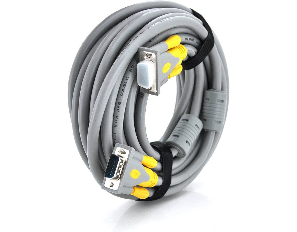 | Кабель Merlion VGA 3+6 HIGH SPEED 40m, male to male (тато-тато), 1 ферит, сіро-жовтий, кульок 1080P Q10 |