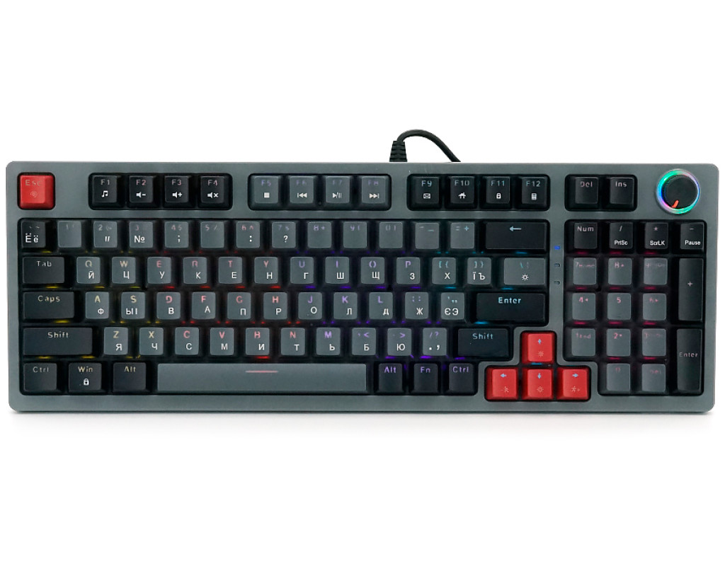 Клавіатура механічна USB JEDEL KL-114, довжина кабелю 170см, RGB підсвічування, (Eng / Укр / Рус), (405х160х45 мм), Black / Gray, 98к, Q10