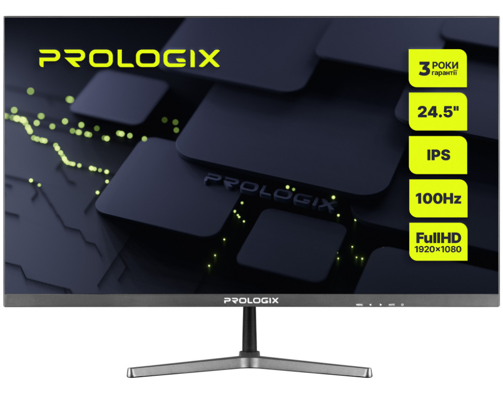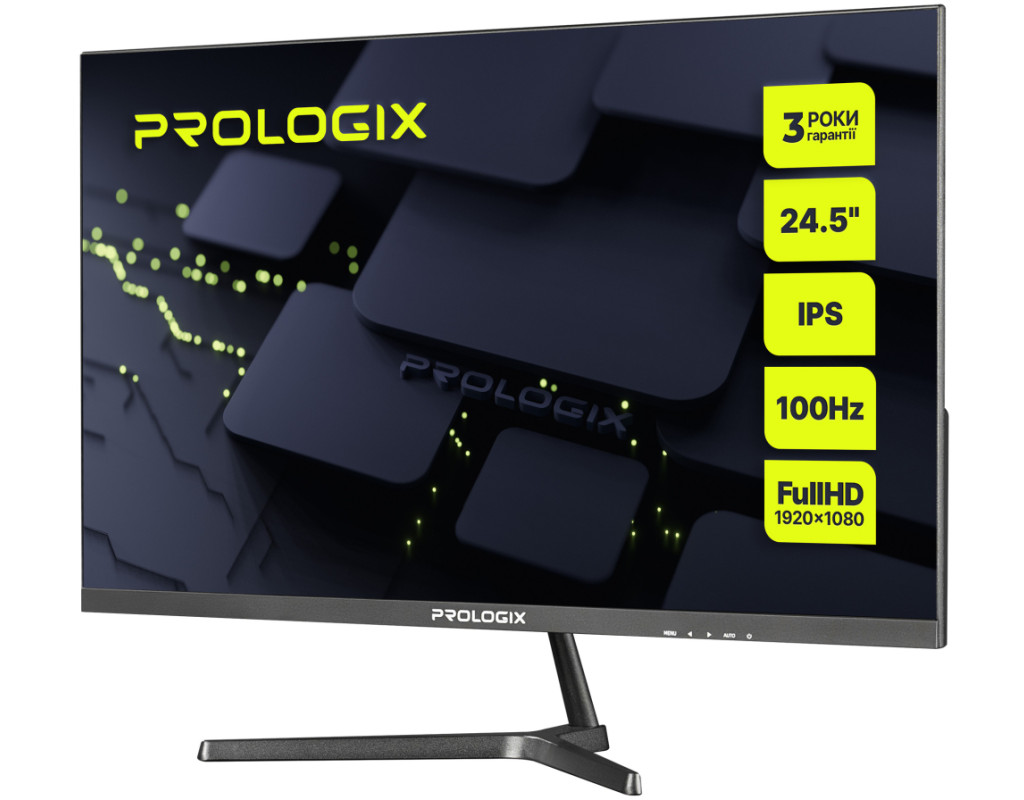 | Монітор 24.5" Prologix P2525HF IPS, 1920 x 1080, 100 Гц, 16:9, 240 кд/м2, 1500:1, 25 Вт, 1 х HDMI, 1 х VGA, 557х401х195 мм, VESA - 75x75 мм, 2.8 кг, чорний |