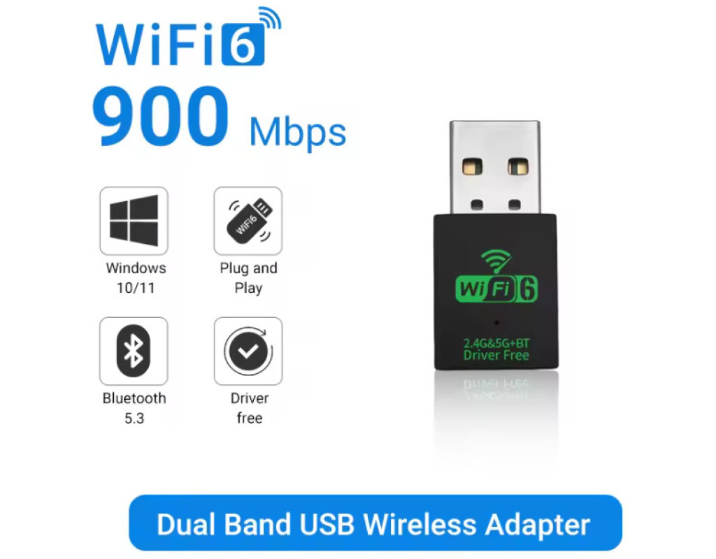 Описание AX900 Wifi 6 адаптер Mini USB WIFI 6 Dongle сетевая карта 2,4 ГГц/5 ГГц Wi-Fi LAN адаптер с бесплатным драйвером для ПК, ноутбука, 600M/300M Обзор продукта: Скорость передачи данных 600 Мбит/с, более быстрое соединение, более плавный интернет; встроенная автоматическая установка драйверов экономит энергию и избавляет от лишних хлопот; компактный размер, удобный как для использования, так и для переноски. Может использоваться как сетевая карта или имитация точки доступа, легко настроить WLAN. Характеристики: 1. Бренд: WALRAM 2. Цвет: черный 3. Тип интерфейса: USB3.0 4. Мощность передачи: 100 мВт (20 дБм); 5. Другие функции: имитация точки доступа; 6. Антенна: Встроенная антенна с высоким коэффициентом усиления 2 дБи 7. Область применения: Настольный компьютер/Ноутбук 8. Диапазон частот: 2,4 ГГц / 5,0 ГГц 11. Скорость передачи данных: 2,4 ГГц: 286 Мбит/с, 5 ГГц: 867 Мбит/с 12. Стандарты: IEEE802.11a/b/g/n/ac/ax 13. Частоты беспроводной связи: 2,412–2,472 ГГц, 5,180–5,825 ГГц; 14. Шифрование: WPA-WEP/WPA-PSK/WPA2-PSK 15. Операционная система: Windows 10/11; 16. Размеры изделия: 30,7 мм x 16,9 мм x 7,5 мм. 9 мм 17. Условия эксплуатации: Рабочая температура: 0°C ~ 40°C |