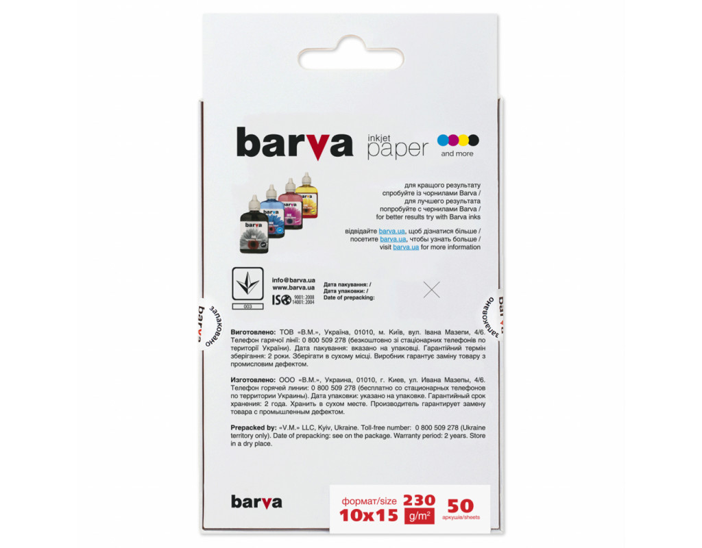 | BARVA 10x15 (IP-BAR-A230-023) - бумага для печати на фотопринтерах с фотографическим качеством. Купить BARVA 10x15 (IP-BAR-A230-023) - значит приобрести высококачественную матовую фотобумагу для печати фотографий полупрофессионального и профессионального уровня. Отпечатки обладают повышенной светостойкостью. Подходит для всех типов чернил. |