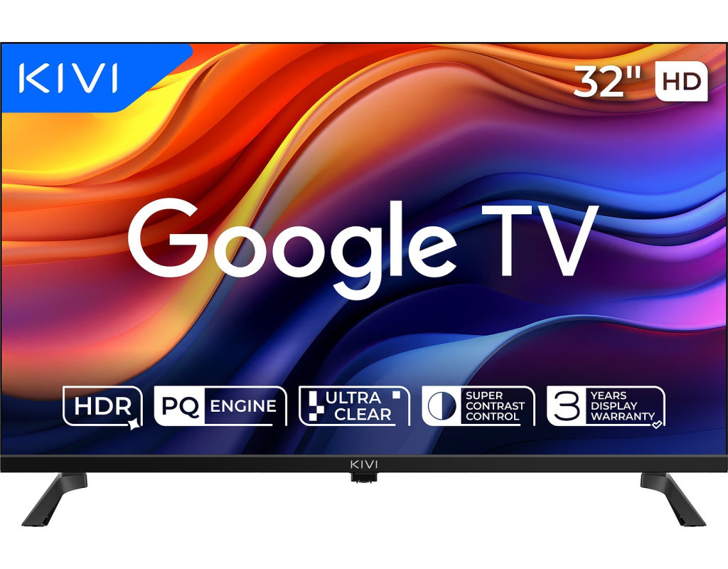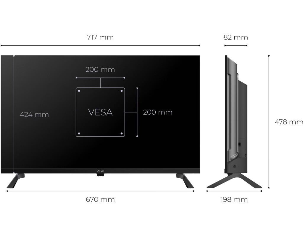 Kivi 32H800KB — компактный Smart TV с диагональю 32 дюйма , сочетающий стильный дизайн, современные технологии и удобство в использовании. Экран с разрешением HD (1366x768) и технологией LCD (LED) обеспечивает четкое, яркое изображение, а антибликовое покрытие делает просмотр комфортным в любом освещении. Широкий угол обзора 178°/178° гарантирует качественную картинку из любой точки, а контрастность 1700:1 и поддержка HDR, HLG и Dolby Vision усиливают глубину цвета и детализацию. Телевизор работает на платформе Google TV и поддерживает Smart TV -возможности: потоковые сервисы, Google Cast , голосовой поиск и управление через смартфон . Звук от двух динамиков мощностью 2×10 Вт поддерживает Dolby Atmos и Dolby Digital , создавая насыщенное, объемное звучание. Для подключения предусмотрено 2 x HDMI и 2 x USB 2.0 , а встроенные тюнеры DVB-T/T2/C/C2 обеспечивают прием эфирного и кабельного цифрового телевидения. Телевизор имеет элегантный черный корпус с пластиковыми ножками (расстояние между ними – 670 мм ) и поддерживает настенный крепеж VESA 200x200 мм . |