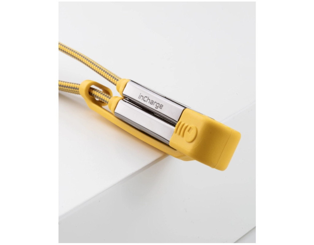 | inCharge XL — многофункциональный кабель для зарядки и передачи данных, благодаря 6-ти возможным комбинациям соединений и длине 3 м заменяет сразу несколько разных кабелей и подходит как для мобильного использования, так и для стационарной работы с ноутбуками, мониторами или павербанками. Поддерживает сверхбыструю зарядку до 100 Вт и зарядку устройств Apple до 27 Вт. Универсальное решение для дома, офиса и путешествий – один кабель вместо нескольких. (модель доступна в трех цветах – черном, желтом и белом, а также в трех вариантах длины: 3 м, 2 м и 30 см) Особенности: