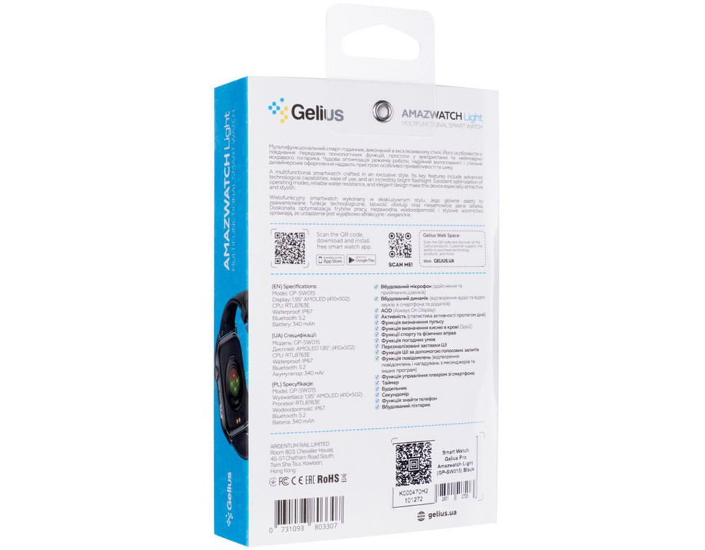 | Смарт-часы Gelius GP-SW015 Amazwatch Light Black (2099901012722) объединяют в себе лучшие технологические решения и элегантный дизайн. Этот унисекс аксессуар позиционируется как настоящий помощник для тех, кто ценит стиль и функциональность. Изысканный корпус из металла делает его идеальным дополнением к любому наряду, а квадратная форма часов добавляет современную эстетику. Оснащенные большим AMOLED-дисплеем, Gelius Amazwatch Light впечатляют своим 1.95-дюймовым экраном с разрешением 410×502. Яркость и насыщенность цветов остаются непревзойденными даже в яркий солнечный день, а функция Always ON Display делает информацию доступной всегда. Это устройство способно стать верным спутником в мониторинге вашего здоровья. Оно оснащено сенсорами, такими как шагомер и акселерометр, а также предлагает круглосуточный контроль пульса, мониторинг уровня кислорода в крови (SpO₂) и артериального давления. Особое внимание уделено женскому здоровью, с функциями для отслеживания циклов и облегчения повседневной рутины. Ежедневные задачи можно решать еще проще с возможностью отвечать на звонки или управлять музыкой непосредственно с часов благодаря встроенному микрофону, динамику и интерфейсу Bluetooth 5.2, который обеспечивает стабильное соединение и качественное звучание. Автономность устройства впечатляет: аккумулятор емкостью 340 мА*ч готов поддерживать вашу активность до 14 дней в режиме ожидания и до 7 дней при интенсивном использовании. Более 100 спортивных режимов превратят ваши тренировки в настоящее удовольствие, синхронизируя все данные с приложением DaFit. Защита IP67 гарантирует устойчивость к пыли и влаге, что делает Gelius Amazwatch Light надежным партнером в любых условиях. Персонализация на высшем уровне: выберите свой циферблат и настройте меню быстрого доступа по своему вкусу. Эти смарт-часы являются незаменимым инструментом для тех, кто желает оставаться на связи, заботиться о своем здоровье и выглядеть стильно. Gelius Amazwatch Light — это ваше цифровое будущее на запястье. |