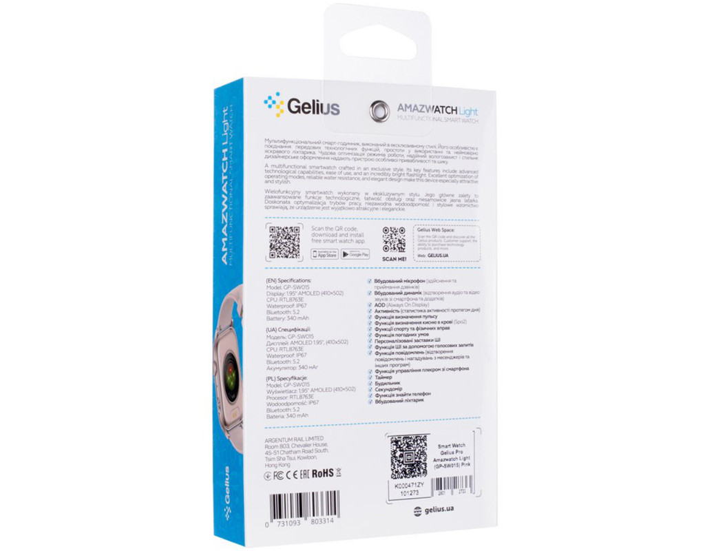 | Смарт-часы Gelius GP-SW015 Amazwatch Light Pink (2099901012739) — это совершенство в стиле и технологиях, которое очаровывает своим внешним видом и многофункциональностью. С уникальным дизайном унисекс, он подойдет как мужчинам, так и женщинам. Его квадратная форма корпуса, выполненного из металла, добавляет элегантности и современности. На большом AMOLED-дисплее с диагональю 1,95 дюйма и разрешением 410×502 пикселей, изображение становится невероятно четким и ярким, даже под прямыми солнечными лучами. Дополнительным удобством является функция Always ON Display, позволяющая всегда быть в курсе времени и основных событий без лишних движений. Эти смарт-часы — не только модный аксессуар, но и интеллектуальный помощник для здоровья. Они ежедневно контролируют ваш пульс, измеряют уровень кислорода в крови (SpO₂) и артериальное давление. Дополнительные функции, такие как мониторинг сна, слежение за женским здоровьем и дыхательные упражнения, обеспечивают полноценный контроль за вашим самочувствием. Благодаря встроенному микрофону и динамику, вы сможете отвечать на звонки и совершать их прямо с запястья. Версия Bluetooth 5.2 гарантирует стабильное соединение с низким энергопотреблением и качественным звучанием. Смарт-часы предлагают впечатляющую автономность с аккумулятором емкостью 340 мА*ч, обеспечивая от прочных 7 дней активного использования до 14 дней в режиме ожидания. Со временем Gelius Amazwatch Light становится вашим персональным фитнес-трекером. Более 100 спортивных режимов позволят вам следить за физической активностью, отслеживать прогресс и устанавливать новые цели. Информация синхронизируется с приложением DaFit, раскрывая полный потенциал часов. Защита IP67 делает его надежным партнером в любых условиях, не боясь пыли и влаги. Выберите свой стиль среди более 100 уникальных циферблатов, настраивайте меню быстрого доступа — все это для максимальной персонализации. Gelius Amazwatch Light — это ваш надежный цифровой партнер, который подчеркнет ваш стиль, будет следить за вашим здоровьем и повышать эффективность. Все, что вам нужно, всегда на запястье. |