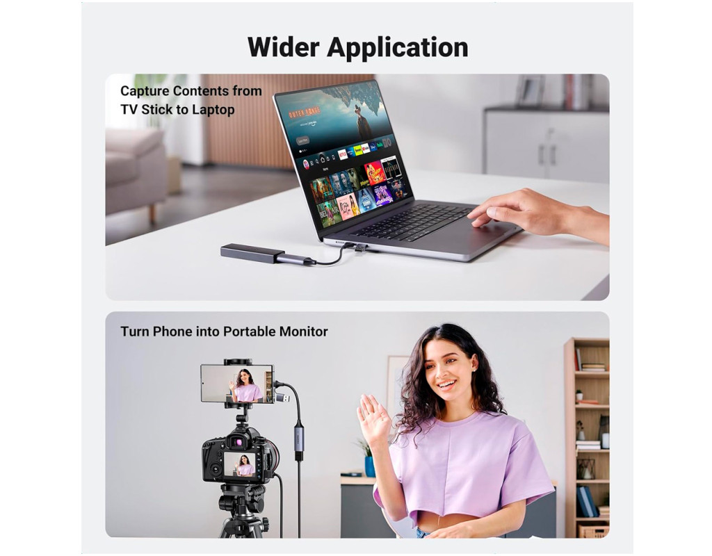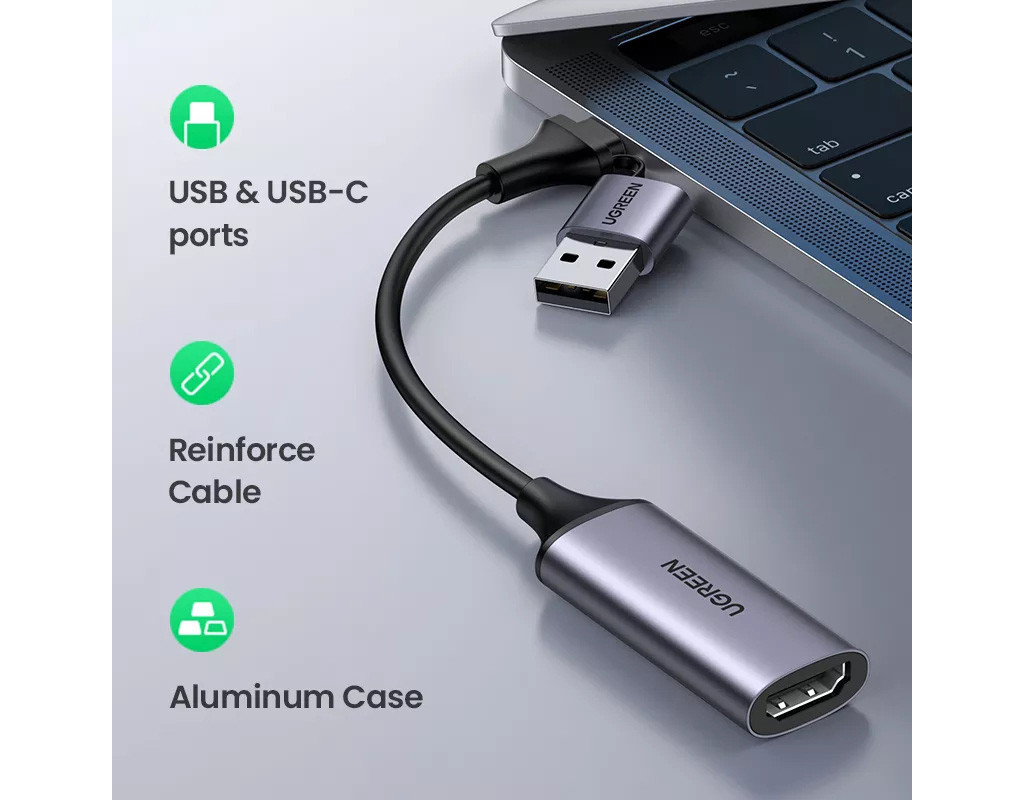 Карта видеозаписи 4K Карта видеозаписи UGREEN HDMI-USB C поддерживает передачу 4K/60 кадров в секунду и записывает видео со скоростью 1080P/30 кадров в секунду. Карта записи видео 4K не влияет на ваши личные игровые возможности на PS5, Xbox Series X/S или ПК во время потоковой передачи или записи. Простая настройка Карта захвата UGREEN 4K HDMI-USB не требует драйверов и позволяет подключать и использовать все устройства, такие как ПК, ноутбук, MacBook, iPad Pro/iPad Mini/iPad с системой iPadOS 17 и телефон. Простая настройка с большинством программ для потоковой передачи и захвата. USB-карта захвата 4K имеет компактный размер, упрощающий транспортировку. Универсальная совместимость Благодаря разъемам USB типа A и USB типа C, карта захвата аудио-видео UGREEN 4K HDMI поддерживает большинство ноутбуков, MacBook, iPad, планшетов и телефонов с системами Windows 8.1/10/11, Mac OS, iOS 17, Linux и Android. Также поддерживаются устройства с видеовыходом HDMI, такие как ТВ-приставка, ТВ-приставка, NS-коммутатор, PS5/PS4, Xbox Series S/X, зеркальная камера, видеокамера Rasperry Pi. Карта захвата USB HDMI работает с программным обеспечением для потоковой передачи и захвата, таким как Twitch, YouTube, FaceBook, OBS, XSplit, Potplayer, Streamlabs. Прочная конструкция Карта захвата UGREEN HDMI имеет алюминиевый корпус для ускорения отвода тепла. Вам не придется беспокоиться о проблемах с перегревом даже после продолжительного использования. Мягкий кабель TPE и усиленная конструкция соединений предотвращают изгиб и повышают долговечность этой карты потокового захвата. Универсальность и практичность Карта захвата потоковой передачи игр UGREEN использует технологию сверхнизкой задержки, позволяющую осуществлять потоковую передачу в реальном времени, записывать кадры игрового процесса на компьютер без сжатия воспроизведения. |