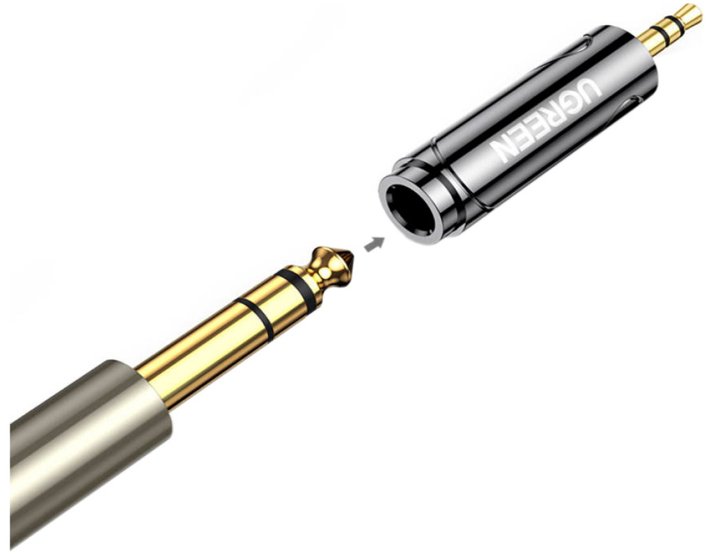 - Аудиоадаптер Ugreen 6.35 мм (6.5 мм) разъем на штекер 3,5 мм — это удобный и экономичный способ подключения смартфона, планшета, iPod или наушников с помощью штекера 6.35 мм (6.5 мм), стандарт 1/4 дюйма, до 3.5 мм. аудиоустройство, сделайте ваши любимые наушники или другие устройства совместимыми с большинством профессионального аудио- и домашнего аудиооборудования, например с усилителем, микшерной консолью, домашним кинотеатром или AV-ресивером