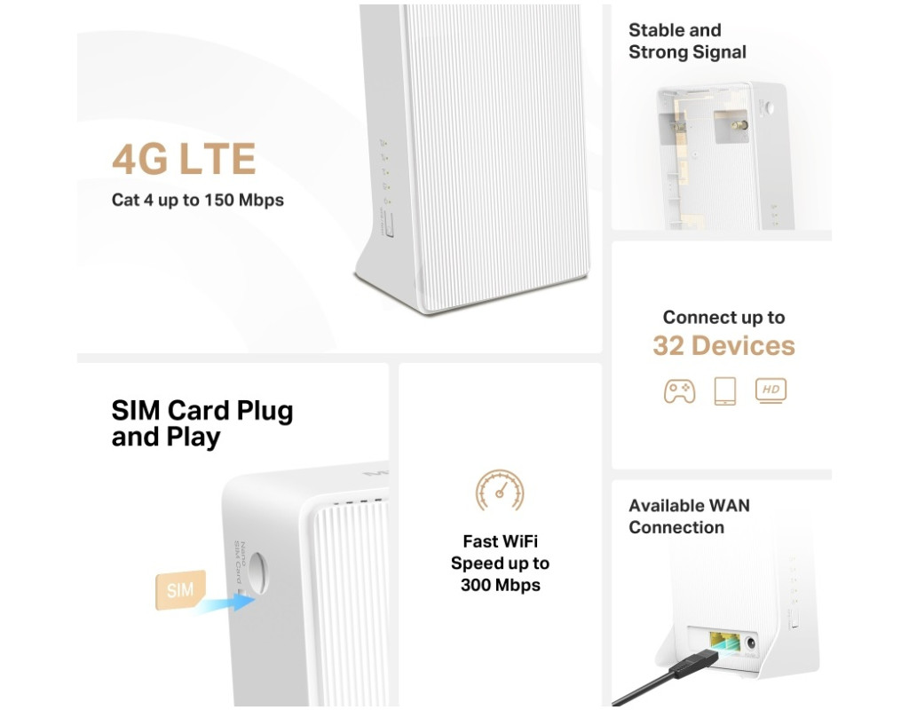 | Маршрутизатор Mercusys MB110-4G — это идеальное решение для создания надежной беспроводной сети в вашем доме или офисе. Поддерживая технологию 4G/LTE, это устройство обеспечивает скорость Wi-Fi до 300 Мбит/с на частоте 2.4 ГГц, что позволяет бесперебойно смотреть потоковое видео, играть в онлайн-игры и комфортно работать в интернете. Кроме основного WAN/LAN Fast Ethernet порта, маршрутизатор оснащен дополнительным LAN-портом, что расширяет возможности подключения проводных устройств. Для максимального покрытия и стабильности сигнала вы можете использовать внешние антенны, подключив их к специальным разъемам. Поддержка Nano-SIM позволяет легко настроить 4G-соединение, что делает Mercusys MB110-4G чрезвычайно универсальным и простым в использовании. Доверьте свои сетевые задачи этому маршрутизатору — и наслаждайтесь качественным и стабильным соединением каждый день! |