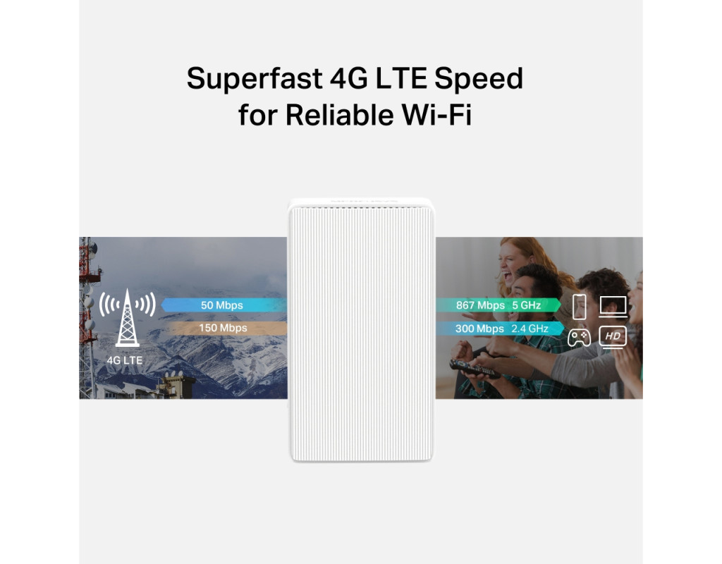 | MB130-4G обеспечивает быстрое подключение через 4G LTE со скоростью до 150 Мбит/с. Поддерживает двухдиапазонный Wi-Fi: до 300 Мбит/с на 2,4 ГГц и до 867 Мбит/с на 5 ГГц – до 32 устройств одновременно. Для работы достаточно вставить Nano SIM-карту – без настроек. Наличие двух разъемов для внешних антенн улучшает качество мобильного сигнала. |