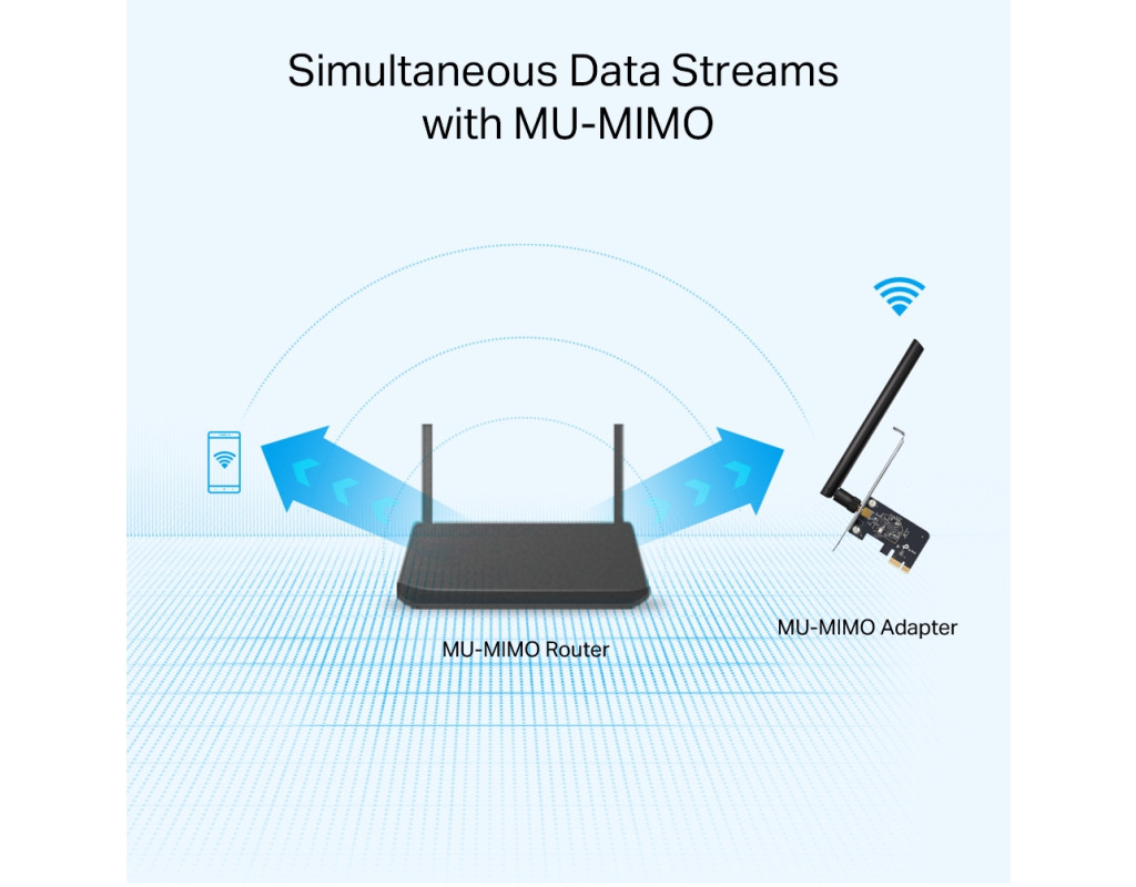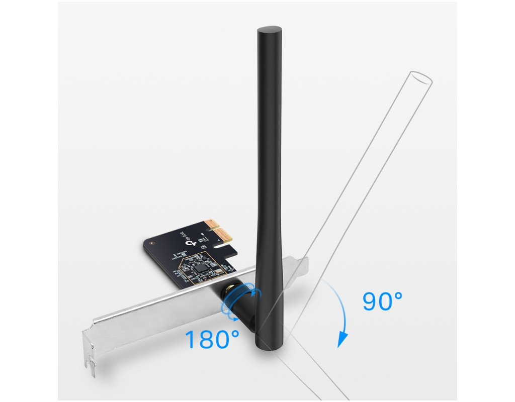 | TP‑LINK Archer T2E — PCI‑Express адаптер Wi‑Fi 5 (802.11ac) для ПК, обеспечивает до 600 Мбит/с (433 Мбит/с на 5 ГГц и 200 Мбит/с на 2,4 ГГц). Поддерживает MU‑MIMO, защищён WPA3, оснащён мощной регулируемой антенной. В комплекте полноразмерный и низкопрофильный кронштейны. Надёжное и доступное решение для подключения ПК к Wi‑Fi. |
