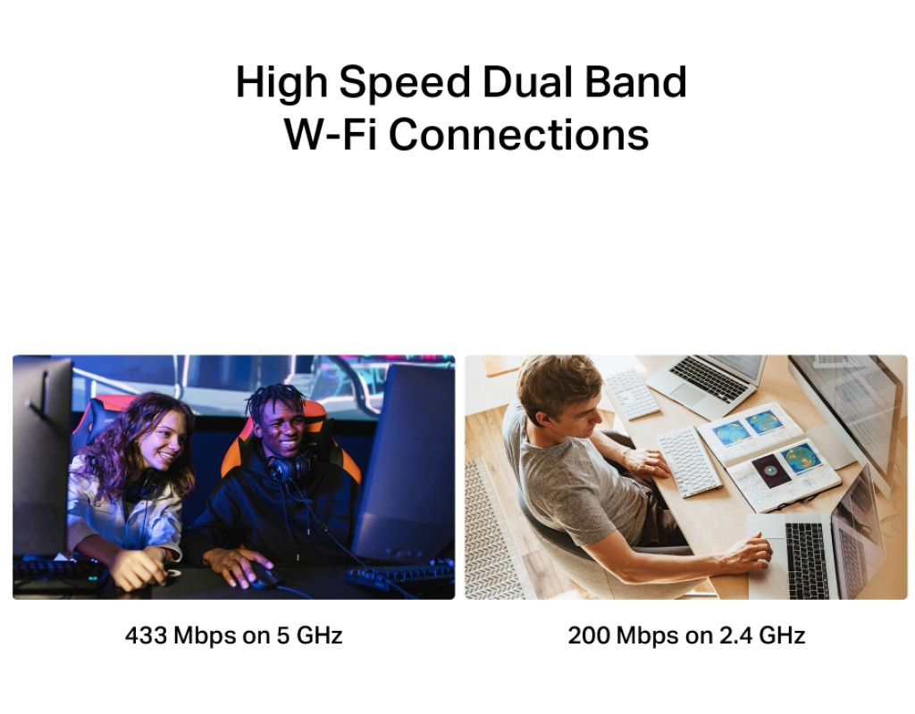 | MA20N сочетает скорость 200 Мбит/с на частоте 2,4 ГГц (подходит для веб-серфинга и электронной почты) и 433 Мбит/с на частоте 5 ГГц (подходит для HD-трансляций и игр), благодаря чему вы можете гибко распределять свои устройства между выделенными сетями, чтобы делать больше одновременно. |