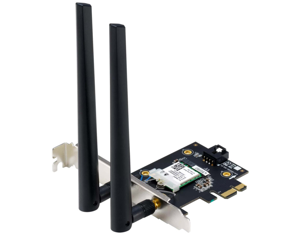 ASUS PCE-BE6500 — адаптер Wi-Fi 7 формата карты PCI-E с двумя внешними антеннами Поддержка диапазона 6 ГГц, технологии 4096-QAM, стандарта Bluetooth 5.4, протокола безопасности WPA3. - Стандарт Wi-Fi 7 — скорость выше в 1,2 раза, более эффективное подключение и улучшенная безопасность сети.