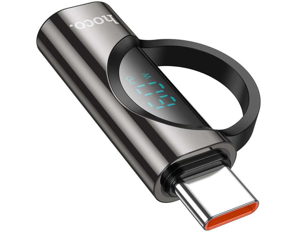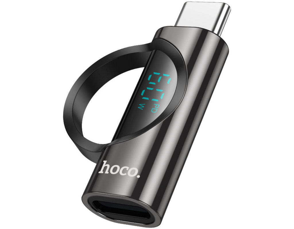 Перехідник HOCO UA32A Type-C(M) => Lighting(F), 60W, індикатор потужності заряду), Black, Box
