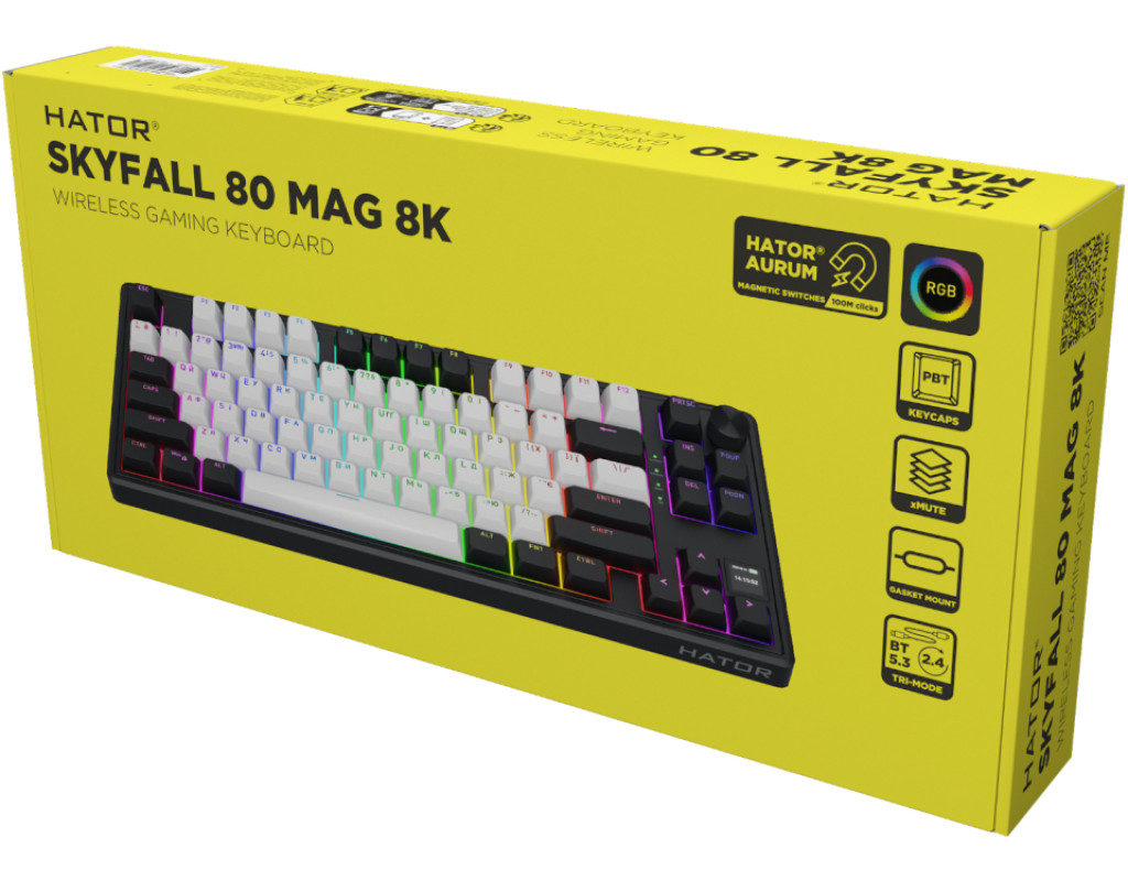 Клавиатура оснащена современными магнитными переключателями HATOR Aurum Ice, которые обеспечивают чрезвычайно быструю и точную реакцию, а также открывают широкие возможности тонкой настройки. Функциональность клавиатуры подкреплена максимальной скоростью опроса до 8000 Гц как в беспроводном, так и в проводном режимах, а также непревзойдённым вниманием к шумо- и виброизоляции, что превращает использование клавиатуры в сплошное удовольствие.