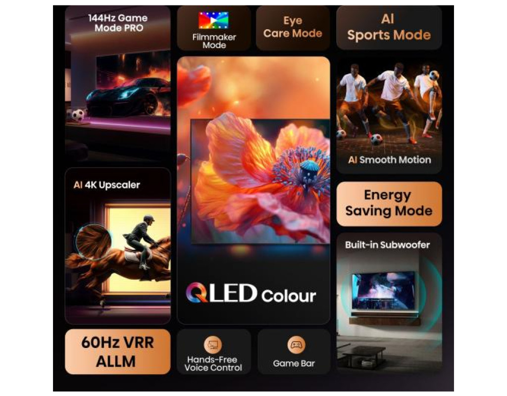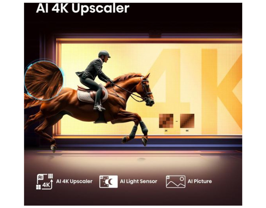 Датчик освещения с ИИ. Интеллектуальная яркость для комфортного и энергоэффективного просмотраНезависимо от времени суток, телевизор автоматически обнаруживает и регулирует яркость экрана в соответствии с освещением в помещении, чтобы уменьшить потребление электроэнергии. Идеальный баланс между энергосбережением и качественным просмотром.
