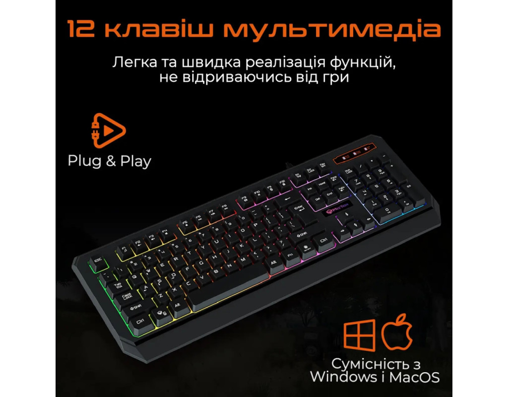 | Клавиатура Meetion K9320 USB UA Black (MT-K9320-A-RUA) — это воплощение стильного дизайна, инновационных функций и высокого качества, созданное специально для истинных геймеров. Центральным элементом этой клавиатуры является мембранный механизм, который обеспечивает мягкое и бесшумное нажатие клавиш. Плавный ход каждой клавиши предоставляет комфорт во время длительных игровых сессий, а влагозащищенный корпус гарантирует надежность даже в неожиданных ситуациях. Особенно впечатляет Rainbow LED подсветка, которая придаёт фантастический вид с различными режимами освещения. Вы можете регулировать яркость и скорость освещения, создавая игровую атмосферу, вдохновляющую на победу. Клавиатура также поддерживает функции Anti-Ghosting до 19 клавиш, что обеспечивает точность в любой сложной игре. Благодаря 12 мультимедийным быстрым клавишам вы получаете мгновенный доступ к вашим любимым мультимедийным функциям, не отвлекаясь от игрового процесса. Удобное подключение через USB интерфейс делает её совместимой как с Windows, так и с Mac OS, обеспечивая простоту использования благодаря концепции Plug & Play. В комплекте идёт инструкция пользователя, которая поможет быстро и легко настроить клавиатуру под свои потребности. Meetion K9320 - это не просто клавиатура, это ваш незаменимый спутник в игровом мире, способный подчеркнуть вашу индивидуальность и подарить новые ощущения от игры. Благодаря долговечности и износостойкости, вы сможете наслаждаться преимуществами этого устройства на протяжении долгого времени. |