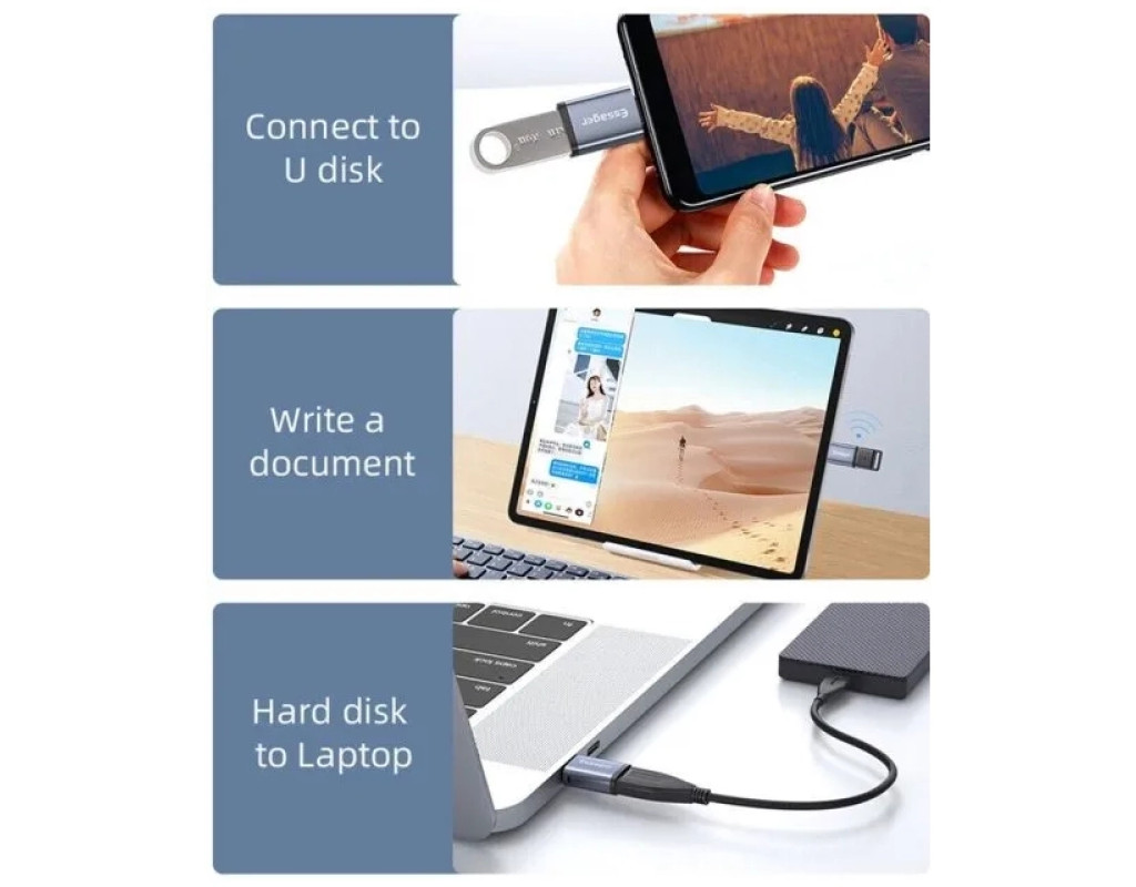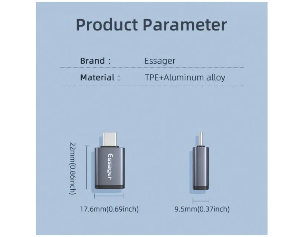 | Essager OTG USB3.0 to Type-C Adaptor – это универсальный OTG-адаптер, который будет замечательным вариантом для подключения разного рода гаджетов к устройствам с разъемом USB Type-C. Интерфейс USB 3.0 обеспечит высокую и стабильную скорость передачи данных, а компактные габариты предоставят возможность всегда иметь его под рукой. Особенности OTG-адаптера Essager USB3.0 to Type-C Adaptor: