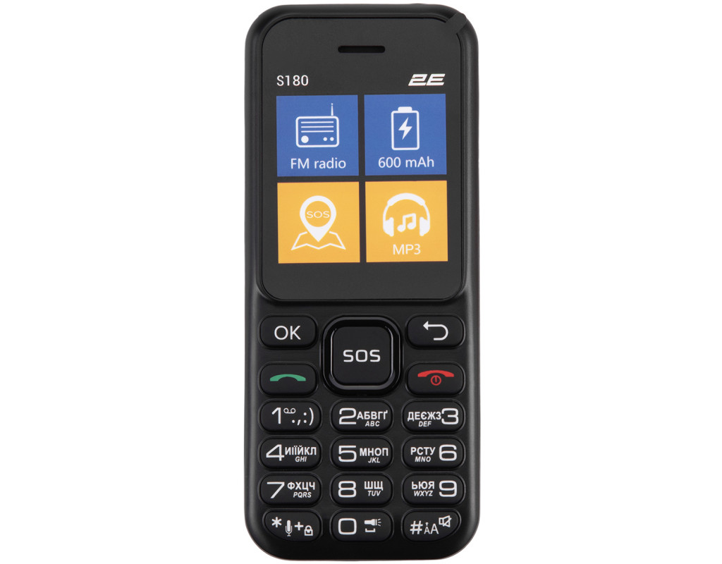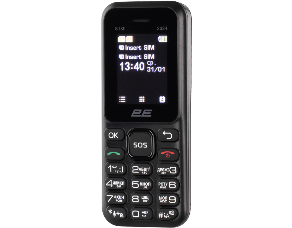 Мобильный телефон 2E S180 2024 выполнен в формфакторе моноблок, что приводит компактность и удобство для ежедневного использования. Корпус сделан из пластика, средняя рамка имеет глянцевую поверхность, а задняя панель – фактурный рисунок с имитацией шлифованного металла. Клавиатура сделана из резины, предусмотрены раскладки на украинском и английском языках. Дисплей и интерфейсы Телефон оснащен 1,77-дюймовым цветным экраном типа TN с разрешением 128?160 пикселей. Этого достаточно для базовых задач, таких как просмотр контактов, создание записей в календаре и отправка текстовых сообщений. Для удобного подключения к другим устройствам телефон имеет интерфейсы Bluetooth 2.1, microUSB и аудиоразъем 3,5 мм. Пользовательский интерфейс имеет два режима отображения главного меню: карусельное меню с большими иконками во весь экран; текстовый список, который пользователь может настроить в соответствии с собственными потребностями. Возможности связи и коммуникации 2E S180 2024 поддерживает две mini-SIM-карты (2FF), таким образом реализована возможность использования двух разных телефонных номеров одновременно. Сеть 2G GSM 900/1800 МГц – залог стабильного сигнала для совершения звонков и отправки SMS. В телефонной книге можно сохранить до 500 контактов, к тому же доступно добавление двух номеров в каждый контакт и установка персональных мелодий (импорт/экспорт контактов осуществляется через Bluetooth или с помощью VCF-файла). Память и хранение данных Объем встроенной памяти телефона ограничен 32 МБ, чего недостаточно для хранения дополнительных мелодий, однако предусмотрена возможность расширения с помощью карты памяти microSD до 16 ГБ. Это позволяет сохранять большое количество музыкальных треков и диктофонных записей. Дополнительные функции Телефон оснащен полезными функциями, делающими его удобным и функциональным: LED-фонарик с двумя режимами работы (постоянный свет, мигание), а также LED-индикация входящих вызовов; режим SOS: автоматическое совершение звонков и отправка SMS на три номера с LBS-координатами телефона; FM-радио работает без подключения проводной гарнитуры благодаря встроенной антенне; MP3-плеер воспроизводит аудиофайлы формата MP3; диктофон: запись голоса через микрофон, а также звонков и FM-радио; функция быстрого набора, календарь, планировщик событий, файловый менеджер, калькулятор, секундомер, таймер, будильник – набор полезных инструментов для повседневных задач; игра «Змейка» для разнообразия досуга; функция энергосбережения для продления времени автономной работы телефона; Функции безопасности: конфиденциальность обеспечена благодаря фильтрам вызовов (черный и белый списки) и возможности установки паролей на отдельные разделы меню. Аккумулятор и размер |