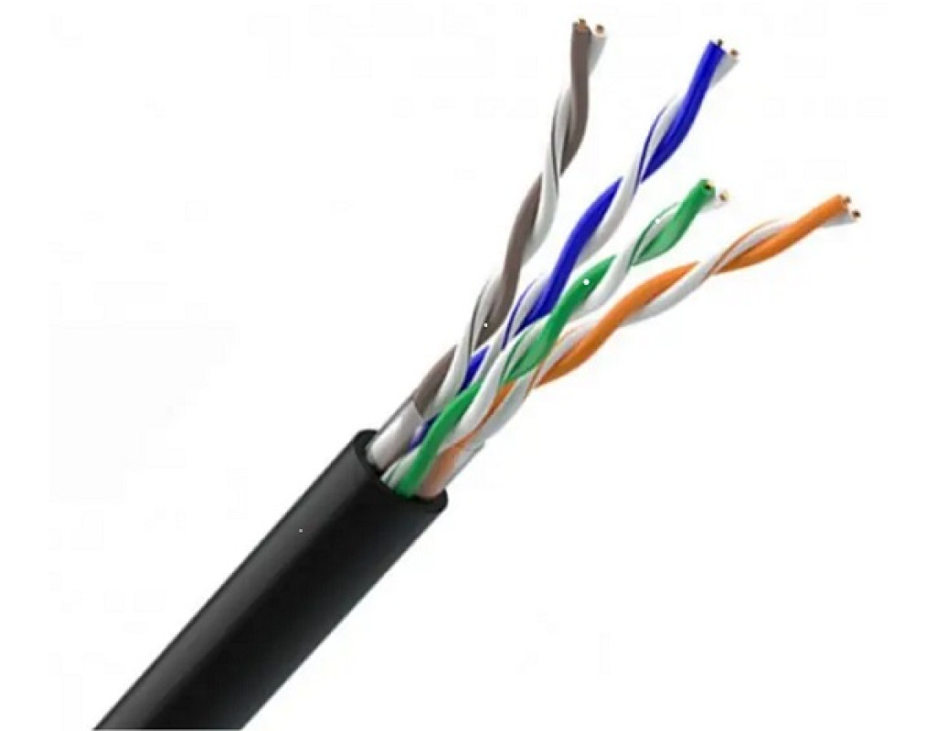 1. Токопроводящая жила (CПЖ): медная проволока 2. Изоляция: сплошная, ПЭ 3. Пара: два изолированных проводника, скрученных вместе с согласованными шагами и со следующей цветовой идентификацией: - пара 1: бело-синяя/синяя - пара 2: бело-оранжевая/оранжевая - пара 3: бело-зеленая/зеленая - пара 4: бело-коричневая/коричневая 4. Поясная изоляция: пленка ПЭТ-Е, с перекрытием 5. Оболочка: светостабилизированная ПЭ черного цвета |
