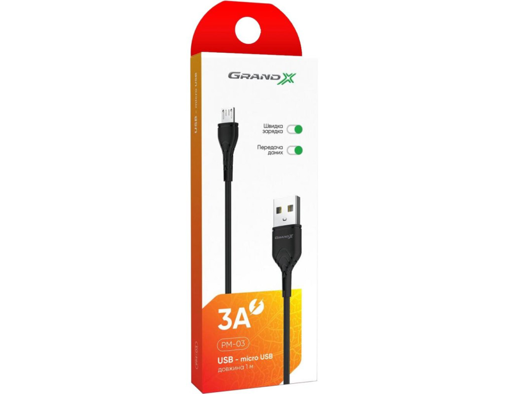 Дата кабель USB 2.0 AM to Micro 5P 1.0m Grand-X (PM-03B)