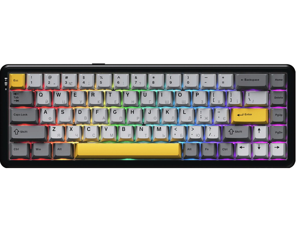 | Клавиатура Ajazz AK680 MAX Magnetic Switch RGB USB Black (AK680-M-BGY-AW) — это безупречный выбор для геймеров и программистов, которые ценят качество, инновации и удобство использования. Эта игровая механическая клавиатура оснащена передовыми магнитными переключателями, которые благодаря технологии Hall Effect обеспечивают точное срабатывание без физического износа. Высокая чувствительность и плавность хода гарантируют удовольствие от каждого нажатия, тогда как регулировка точки срабатывания позволяет настроить клавиатуру под ваш стиль — от легкого касания до глубокого нажатия. Благодаря проводному USB Type-C интерфейсу вы получаете молниеносную скорость передачи данных без задержек, что критично важно во время напряжённых игровых баталий. Стойкость и надежность проводного соединения позволяют сосредоточиться лишь на победе. RGB-подсветка клавиатуры, которую можно кастомизировать по своему вкусу, добавляет шарма вашему рабочему или игровому пространству. Яркие цвета и их сочетания создают уникальную атмосферу, придавая новые ощущения от использования устройства. Эргономичный дизайн с продуманными деталями делает Ajazz AK680 MAX незаменимым инструментом как дома, так и в офисе. Её компактный формат обеспечивает оптимизированное использование пространства, а раскладка с украинскими и английскими символами гарантирует удобство печати. Приятный на ощупь корпус, устойчивый к стиранию, делает клавиатуру долговечной, обеспечивая тихую работу клавиш. Совместимость с различными ОС, такими как Mac OS, Windows и Linux, делает эту клавиатуру универсальным выбором для любого пользователя. Выберите Ajazz AK680 MAX для бескомпромиссного качества, уникальных функций и максимального комфорта в каждом нажатии. |