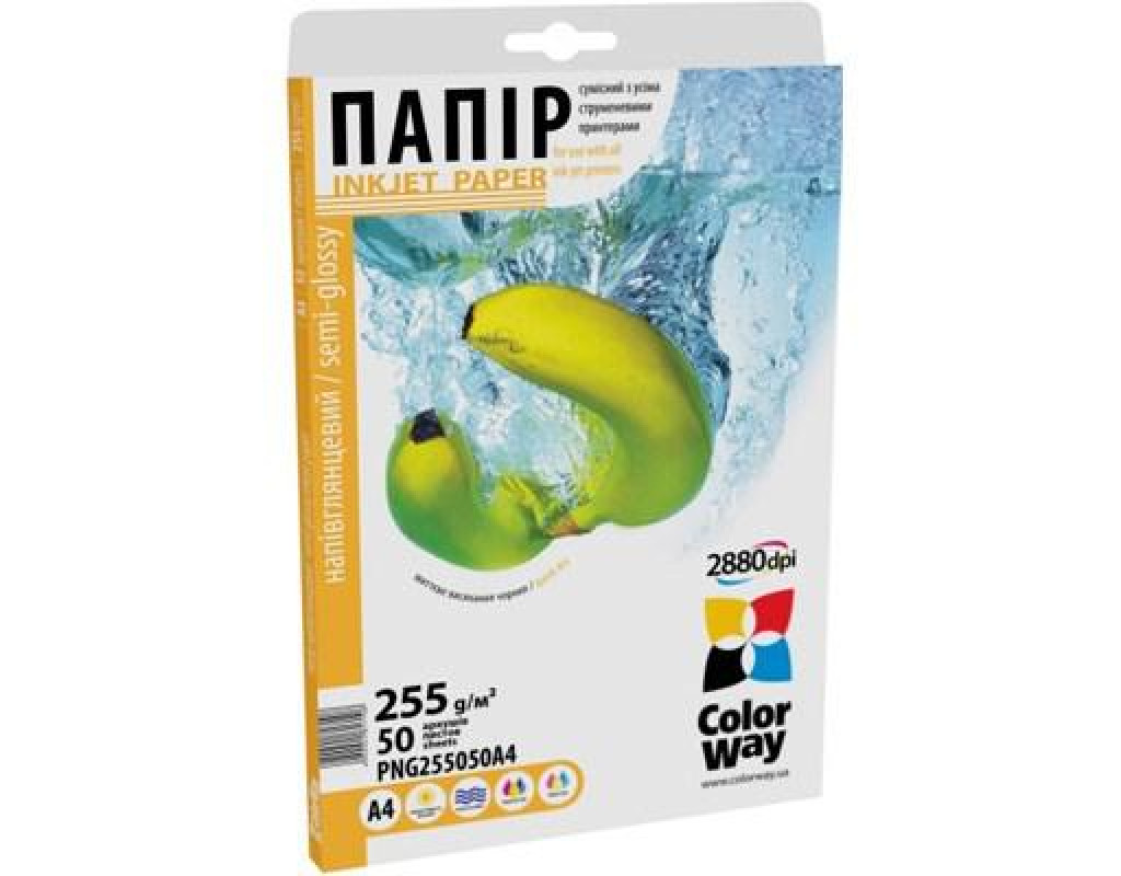 | Бумага ColorWay A4 (PNG255050A4) Покрытие бумаги представляет собой нечто среднее между бумагами с высоким глянцем и матовой бумагой. Идеальное решение в условиях насыщенности цветов, высокой яркости и белизны. Бумага имеет высокую плотность и устойчива к механическому воздействию. Имеет приглушенный блеск, не дает резких бликов. Идеально подходит для ежедневной фото печати, на таких фотографиях можно не боятся оставить отпечатки пальцев. Полу-глянцевая фотобумага мгновенно впитывает водорастворимые чернила, при печати пигментными чернилами рекомендовано просушивать отпечаток для предотвращения смазываниях с поверхности. |