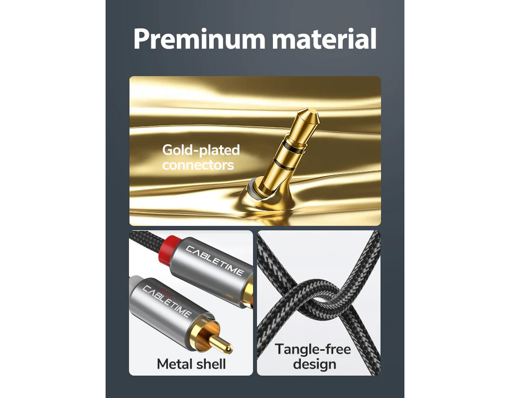 Аудіо кабель 3.5мм (M) - 2xRCA (M), 3м. Особливості: Кабель використовується для передачі аудіосигналу, з'єднує стандартний роз'єм для навушників 3,5 мм з двома аудіо роз'ємами RCA. Роз'єм 1: 3.5 мм M audio. Роз'єм 2: 2x RCA M audio. Довжина кабелю: 3 м. Колір кабелю: чорний. Розмір: 110x160x20 мм. Вага: 54 г. Розмір в упаковці: 170x250x20 мм. Вага в упаковці: 64 г. Гарантія: 12 місяців. |