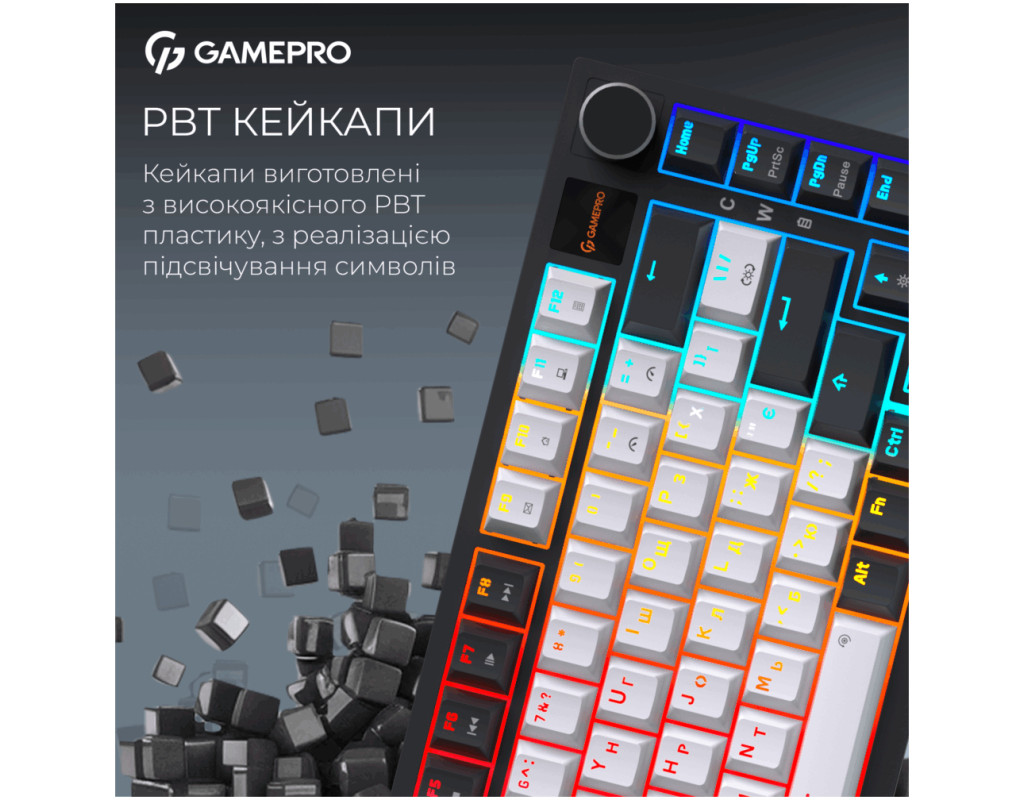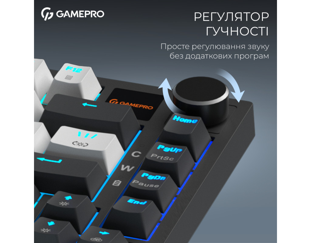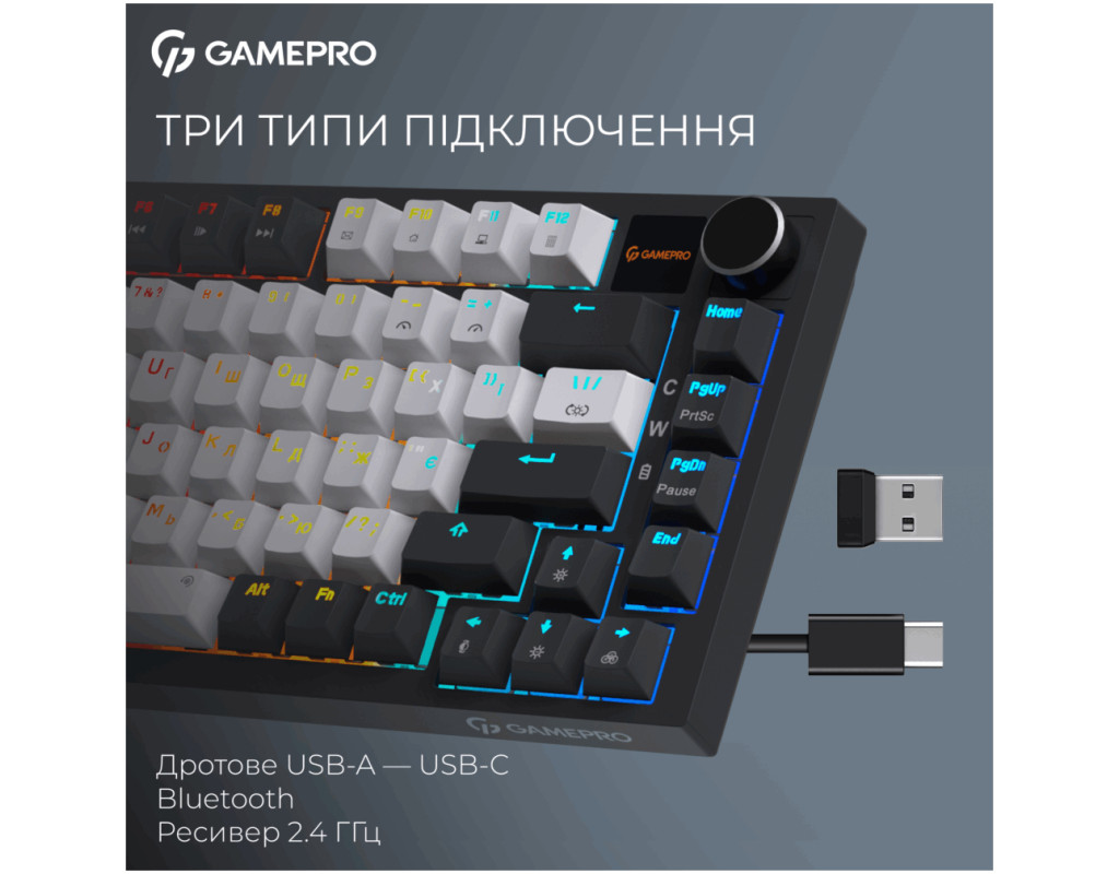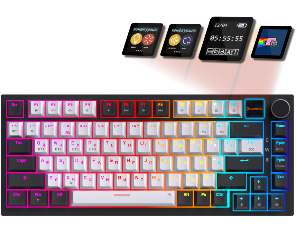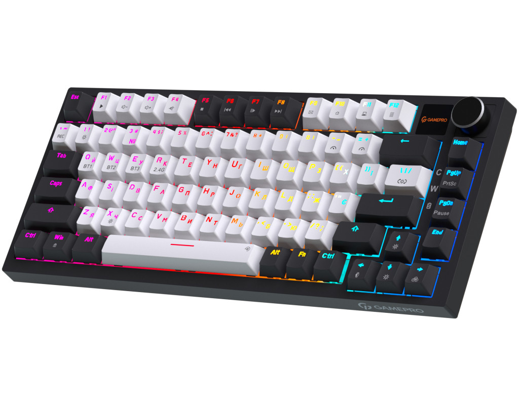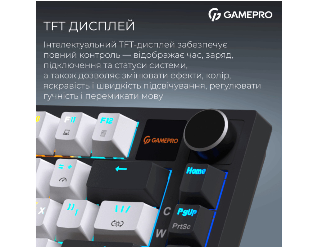 Игровая механическая клавиатура GamePro Asgard Valhalla Pro — топовое решение для геймеров и профи, которые хотят максимум тактильности, скорости и контроля. 75% компактный форм-фактор с TFT-дисплеем на борту: в реальном времени показывает режим подключения, заряд батареи, активный профиль, эффект RGB и системную инфу — всё без софта, прямо на клавиатуре.