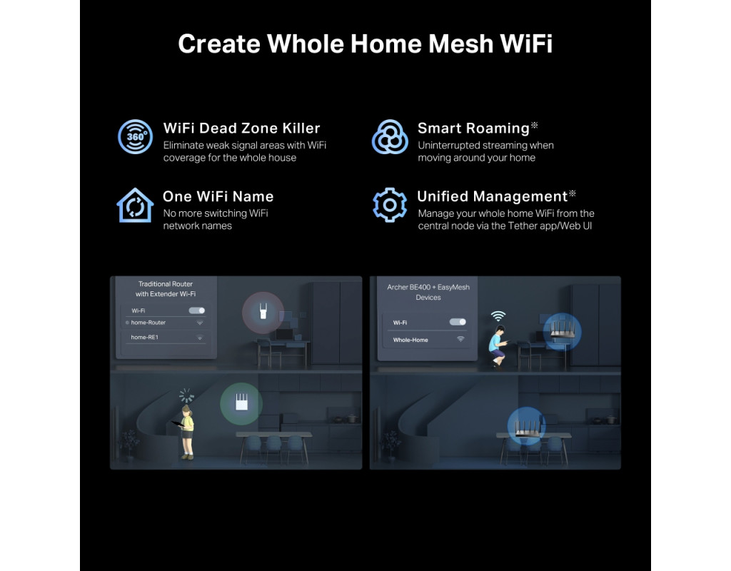 | Маршрутизатор TP-Link Archer BE400 (ARCHER-BE400) – это технологический прорыв, который приносит исключительную скорость и надёжность в пользование интернетом. С поддержкой стандарта Wi-Fi 7, этот маршрутизатор обеспечивает удивительную скорость до 6.5 Гбит/с, предоставляя вашим устройствам максимальную производительность. Оснащённый шестью несъёмными антеннами, Archer BE400 гарантирует максимальную пропускную способность и улучшенное качество соединения. Два 2.5 Гигабитных порта LAN открывают путь к безудержным скоростям для ваших проводных устройств, в то время как поддержка транспортных протоколов, таких как DNS, IPv6, IPv4, и других, обеспечивает гибкость и универсальность. Этот маршрутизатор также поддерживает возможности VPN для повышенной безопасности вашей сети. Благодаря мощному приложению Tether, настройка Archer BE400 происходит буквально за несколько минут, обеспечивая стабильное и надёжное соединение в вашем доме без лишних усилий. Wi-Fi следующего поколения с TP-Link Archer BE400 – это ваш идеальный выбор для создания современной домашней сети. |