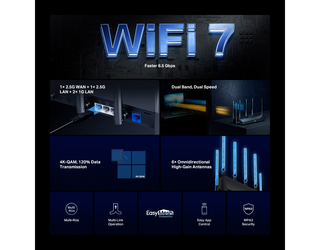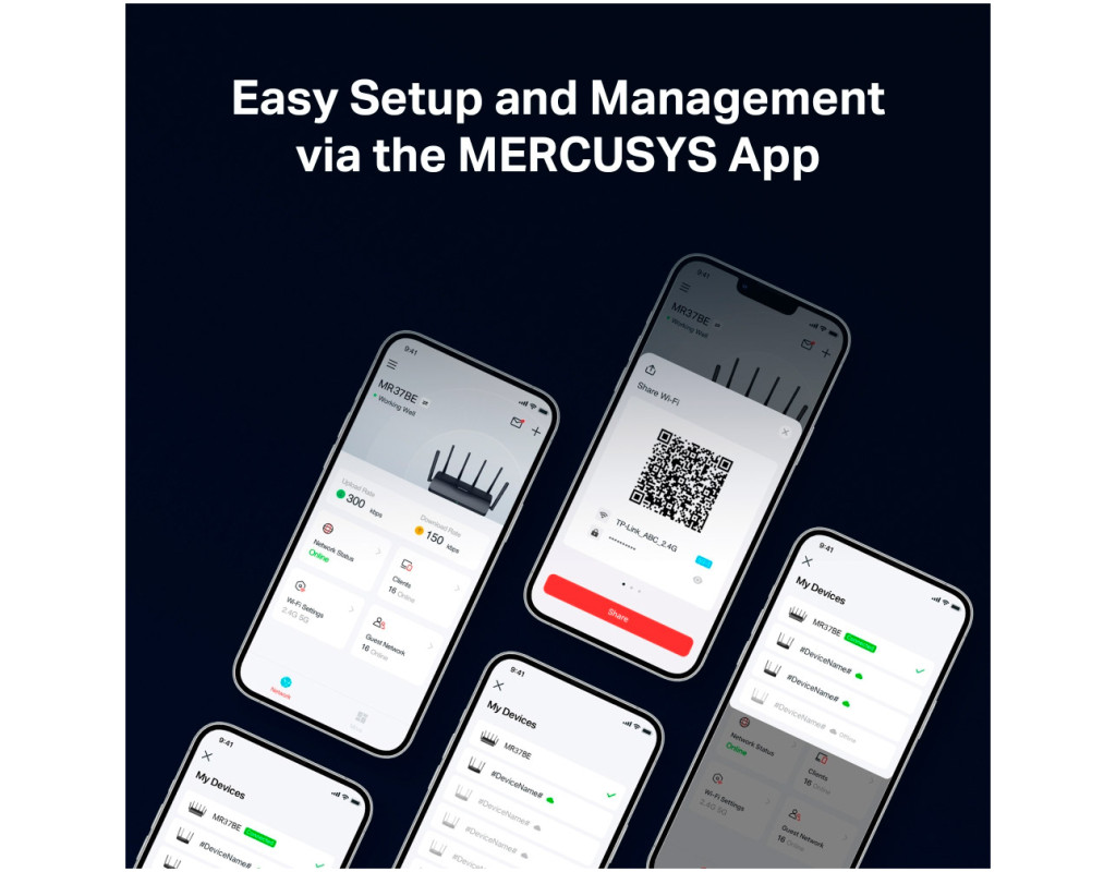 | Маршрутизатор Mercusys MR37BE - это путь к новым горизонтам беспроводного соединения благодаря поддержке стандарта Wi-Fi 7. Он обеспечивает невероятную производительность, повышенную защищенность, более широкое покрытие и меньшую задержку. Благодаря двухдиапазонному подключению, вы можете наслаждаться скоростью потоковой передачи, погружением в VR/AR, играми и бесперебойными видеоконференциями. MR37BE оснащен несъемными шестью антеннами, которые вместе с технологией формирования луча обеспечивают сильные и надежные соединения даже в больших домах. Поддержка транспортных протоколов L2TP, PPTP, PPPoE делает его универсальным для любой сети. Порты 2.5 Гбит/с позволяют полностью использовать скорость вашего интернет-подключения. Интуитивно понятное приложение MERCUSYS упрощает настройку и управление, а технология EasyMesh позволяет создать масштабируемую и бесперебойную сеть. С безопасностью на первом месте, MR37BE, оснащен стандартом WPA3, обеспечит защиту вашей личной информации. Управляйте безопасностью детей и ограничивайте доступ к нежелательным сайтам для создания здоровой онлайн-среды. Выберите Mercusys MR37BE для непревзойденного опыта использования интернета! |