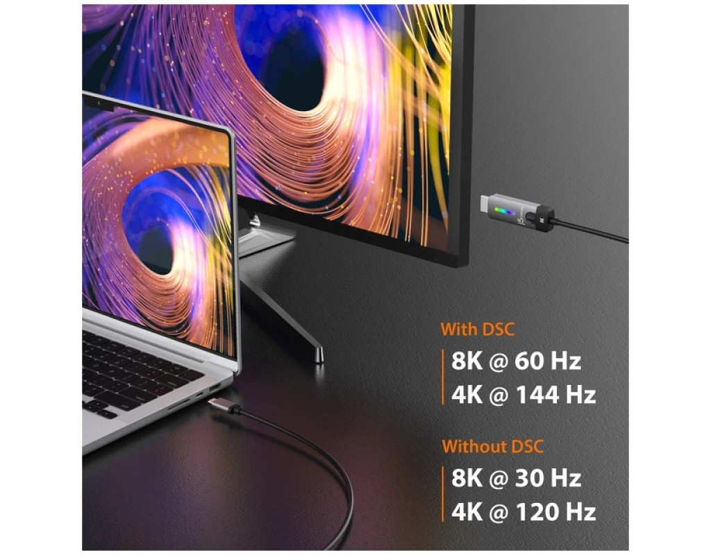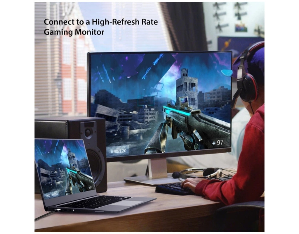 | Наш кабель USB-C к HDMI 2.1 8K позволяет удобно подключить игровой ноутбук, MacBook, Chromebook или планшет к внешнему монитору 8K UHD/4K 144Гц, 8K UHDTV, проектору и другим устройствам отображения с помощью входа HDMI. Этот адаптер предлагает новейшее соединение USB-C к 8K или 4K 144Гц HDMI, позволяющее подключить дисплей HDMI к игровому ноутбуку, планшету или телефону, поддерживающему DisplayPort Alternate Mode, для подключения по принципу «Plug and Play». Особенности: