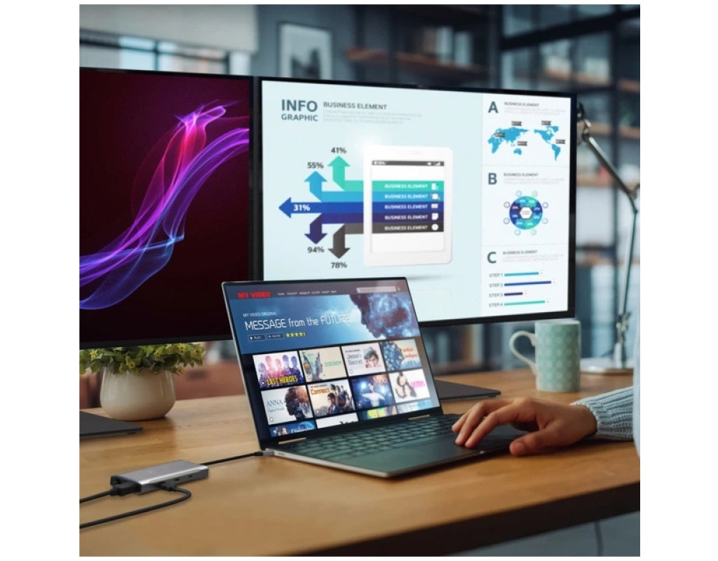 Тип - внешний, Интерфейс подключения - USB Type-C, Выходные разъемы - 1 х RJ45, 2 x USB type C, 3 х USB 3.0, microSD, DisplayPort, 2 x HDMI, SD, Также шукають - для MacBook
