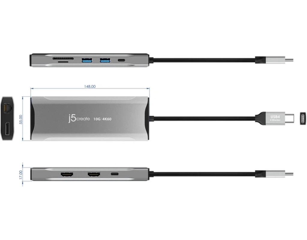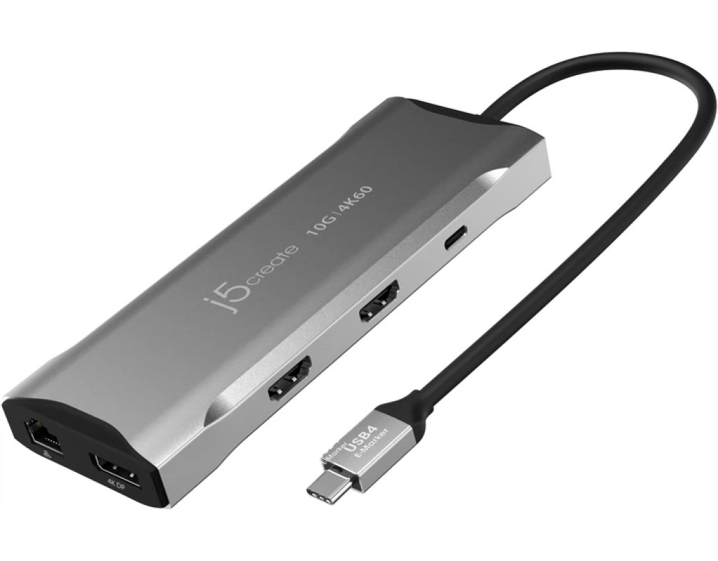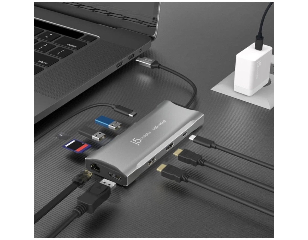 Концентратор J5create USB-C 9-in-1 2xUSB 3.2 + 2xUSB-C PD + 2xHDMI 4K + DisplayPort + SD/TF + RJ45 1000Mbps gray (JCD397-N)