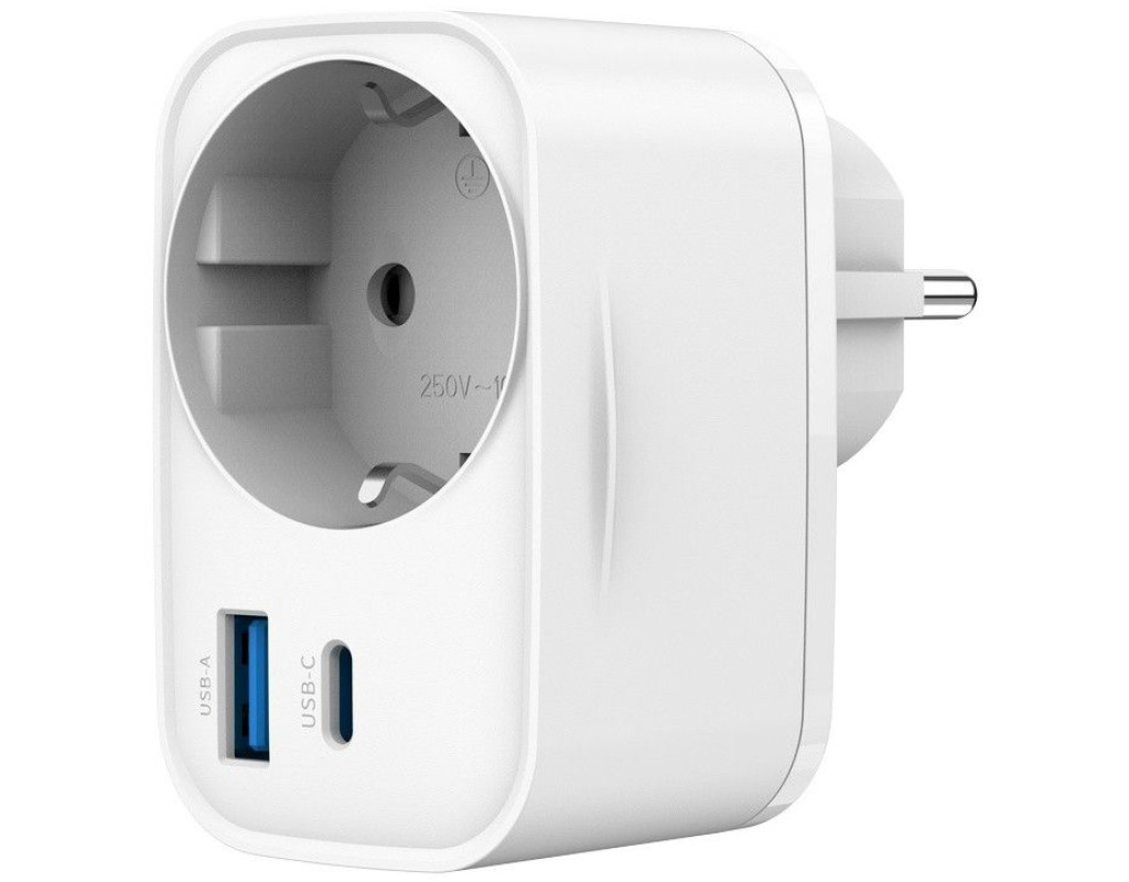 Тип - адаптер, Питание - сеть, Назначение - для планшета, для фитнес-браслета, для раций, для геймпада, для экшн-камер, для смарт часов, для TWS наушников, для смартфона, тип выходного подключения - USB Type-C, USB, розетка, Max - 3 А, 20 Вт, количество USB портов - 1 x USB, 1 x USB Type C, быстрая зарядка - Power Delivery, Quick Charge 3.0, белый
